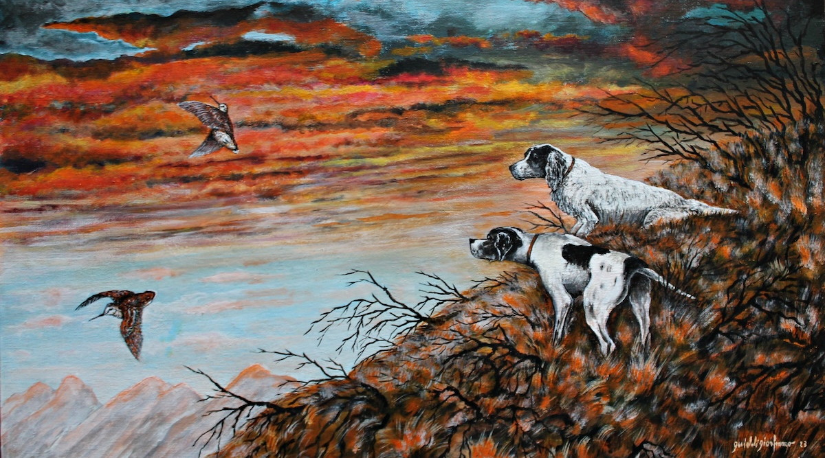 Guidali ha inoltre omaggiato i presenti con una stampa di un suo disegno, che ritrae una suggestiva scena di caccia alla beccaccia.