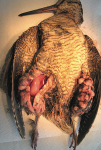 Il virus (reovirus) fu esclusivo della beccaccia e non di altri uccelli. Gravi i danni organici a vari livelli tali da determinare un complessivo danno corporeo (dimagramento grave) associato anche a inappetenza e legato all’infezione trasmessa per via fecale orale. Quindi beccacce morte per denutrizione.