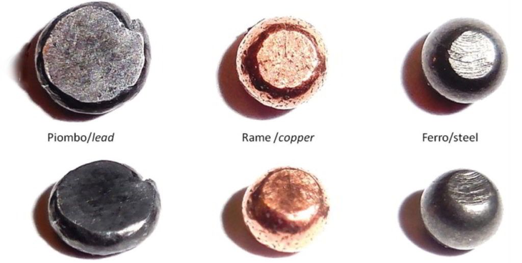 ferro 13,6 %, rame 26,7 %, piombo 50%. Immagine e studio sui materiali © Baschieri & Pellagri