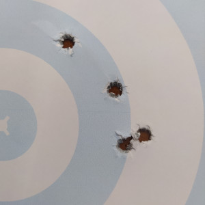 La prova sul bersaglio si è svolta sulla linea dei 100 metri, all’esito della quale si è ottenuta una distribuzione dei quattro colpi in un diametro di 42 millimetri misurati tra i centri più lontani. Si tratta di una cartuccia dalla non trascurabile velocità d’esercizio; sicuramente saprà esprimersi al meglio in canne con un passo di rigatura più lungo, come quello da 1:12”, tipico per il calibro .223 Remington, più in linea con l’utilizzo di proiettili leggeri.