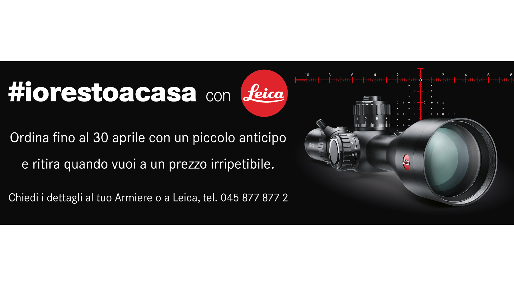 Il cacciatore che ha bisogno di acquistare un’ottica può farsi ingolosire dall’offerta di Leica: si ordina da oggi al 30 aprile con un acconto di 300 euro, si ritira quando si vuole entro fine settembre. Qual è l’offerta? La forte riduzione del prezzo, legata evidentemente a una situazione straordinaria. Tranne che sui nuovi visori termici Leica Calonox, il circuito ufficiale di distribuzione Leica garantirà uno sconto minimo del 20% su tutto il listino. L’hashtag della campagna è #iorestoacasaconleica. Per informazioni è possibile contattare il distributore Forest Italia al numero 045 8778772 o all’indirizzo e-mail info@forestitalia.com.