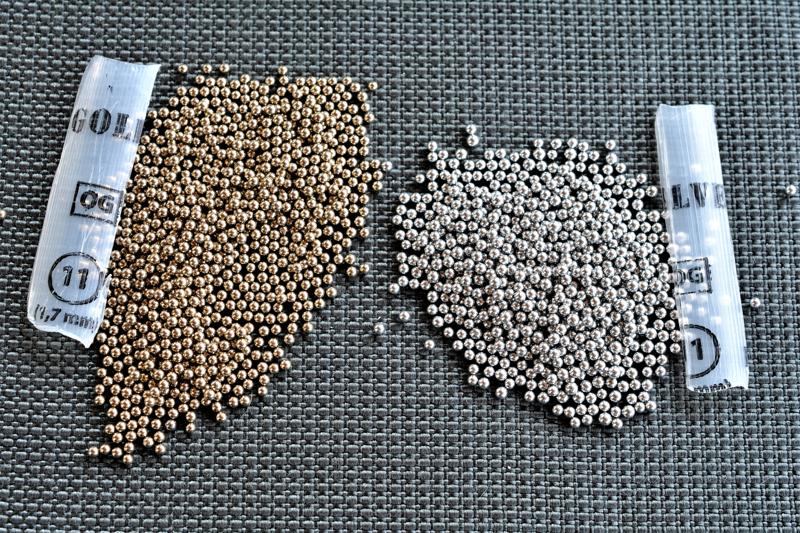Pallini: piombo grafitato oro (Golden Queen ) o argento (Silver Queen) in dose di 24 grammi, numero 11 (1,7 mm di diametro); disponibili altre numerazioni (7½ e 9)