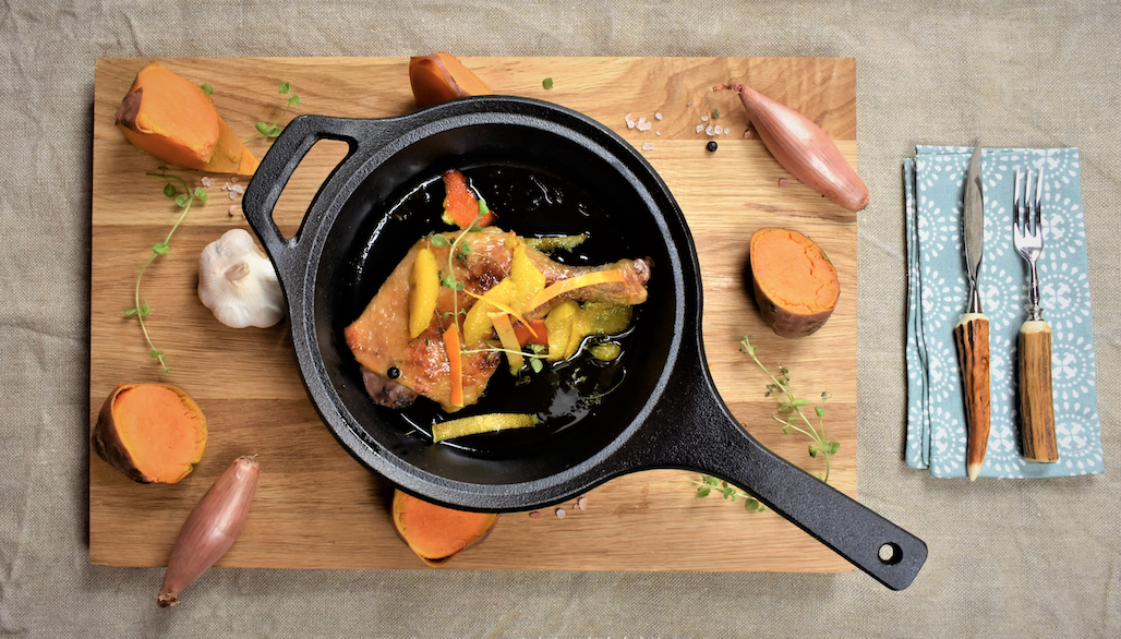 Nel Lodigiano esistono realtà uniche e senza tempo. Sempre alla ricerca di luoghi dove far correre i miei bracchi tedeschi, mi sono trovato immerso in una di queste perle di campagna, l’azienda agrituristico-venatoria Casottone dei Nani. E il profumo di erba bagnata e legna che scoppietta nel camino mi hanno ispirato questa ricetta fresca e saporita: anatra all’arancia guarnita con foglie di origano fresco e patate dolci.