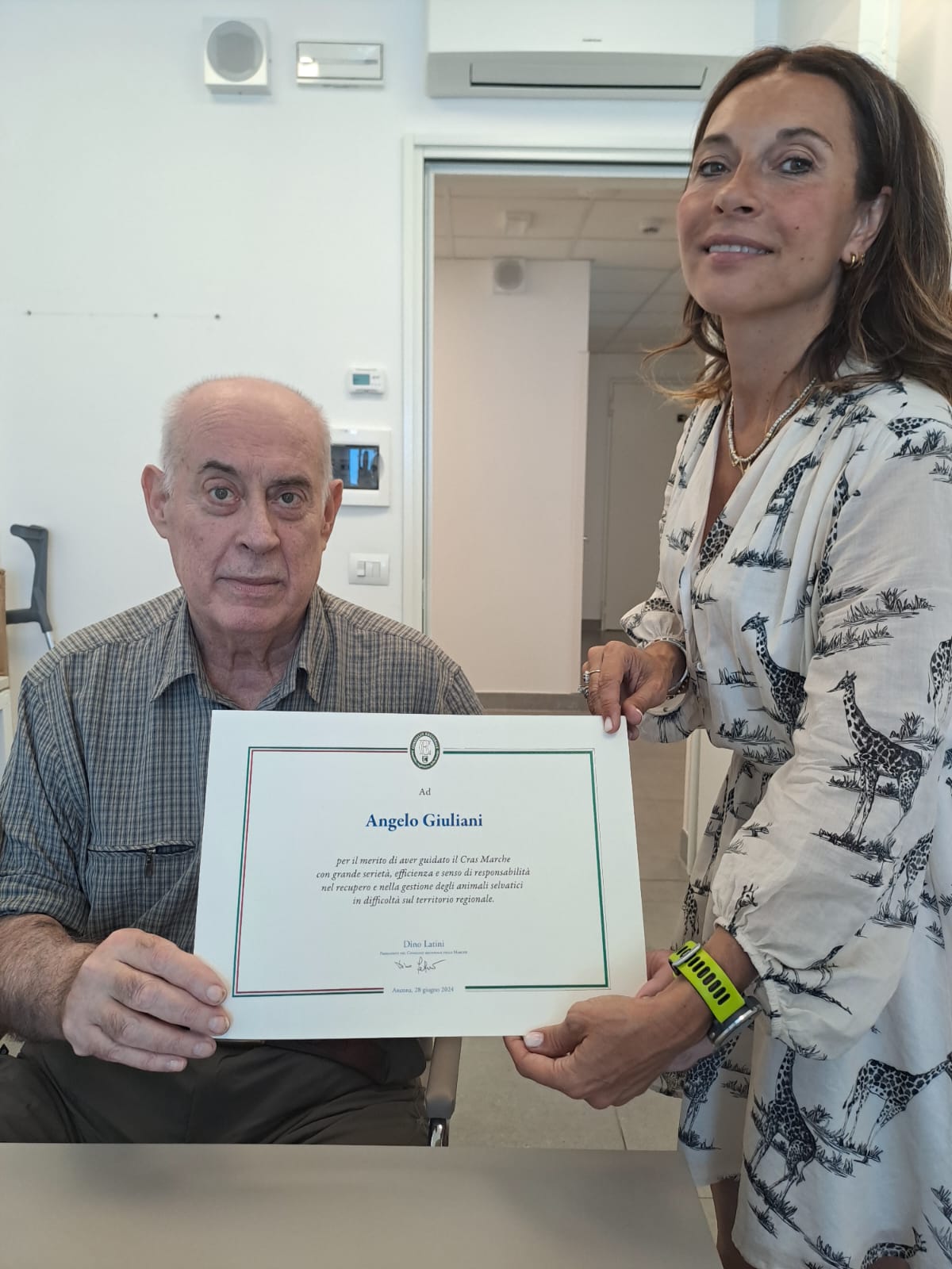 Angelo Giuliani, responsabile scientifico del Cras Marche, ha ricevuto dal consiglio regionale un riconoscimento ufficiale per l’attività svolta.