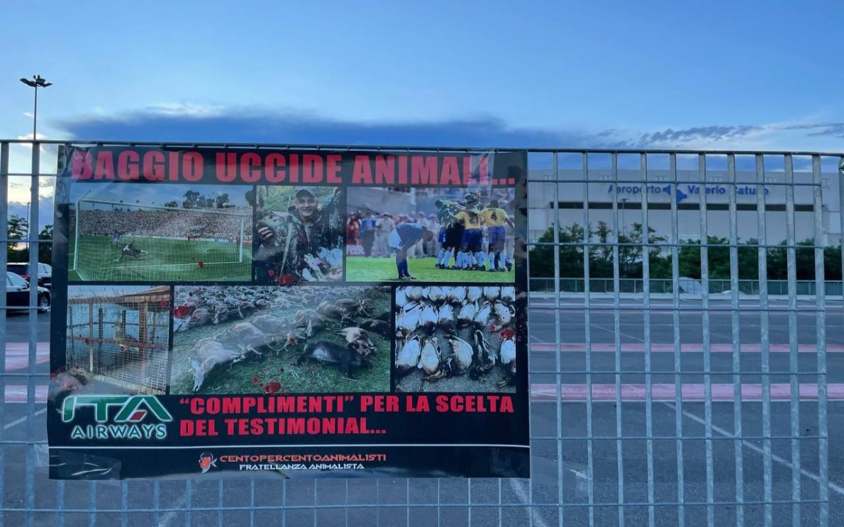 Sarebbe insensato anche se non avesse come bersaglio il più formidabile calciatore italiano (europeo? mondiale?) della storia, ma si sa che più grande è il simbolo e più grande sembrerà il gesto: e quindi il movimento Centopercentoanimalisti ha appeso all’ingresso dell’aeroporto Valerio Catullo di Verona uno striscione contro Roberto Baggio «che uccide animali». Il motivo del nuovo attacco contro un uomo che non ha mai nascosto la propria passione per la caccia ma che da anni sta lontano dalle polemiche, quasi nascosto agli sguardi del pubblico, è da ricercare nella decisione di Ita Airways che gli ha dedicato il primo volo Roma-Buenos Aires.