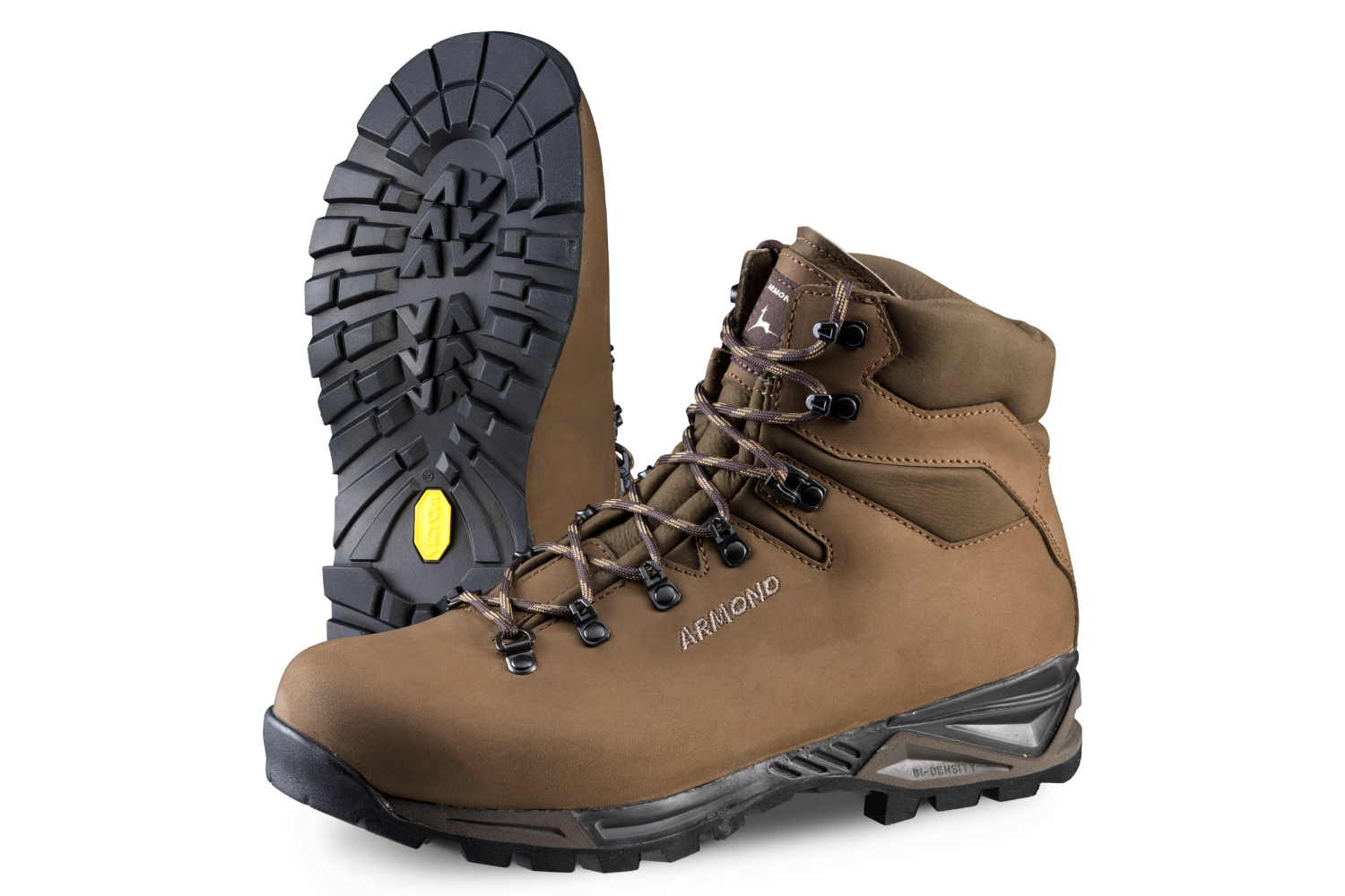 Per i sentieri di media difficoltà la Armond propone lo scarpone da caccia Bormio 340 nabuk, con inserti in pelle e suola Vibram New winkler.