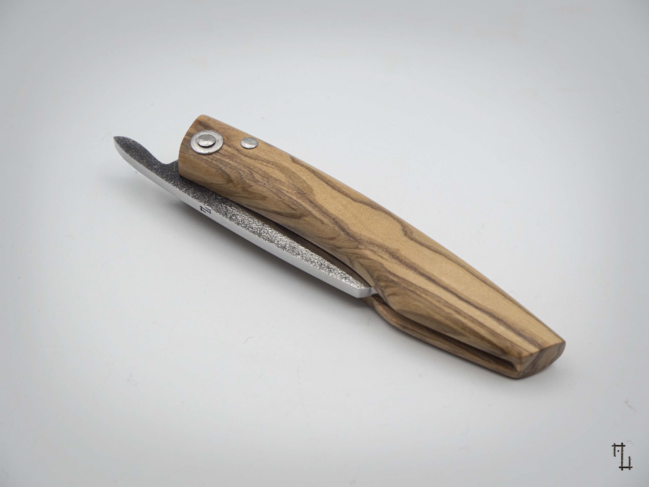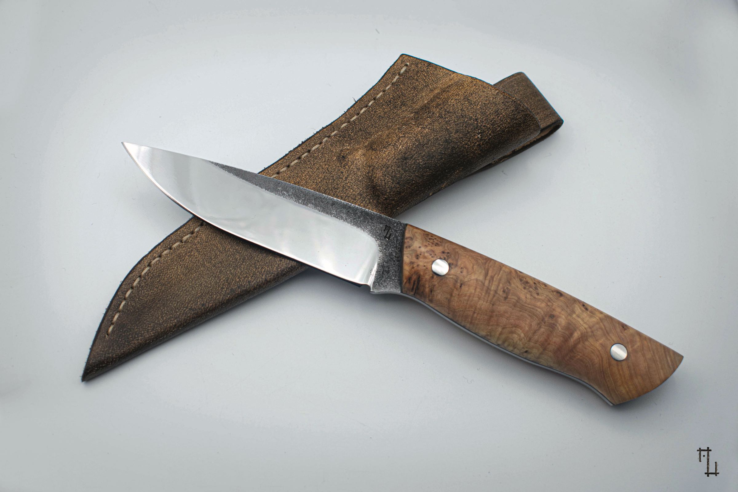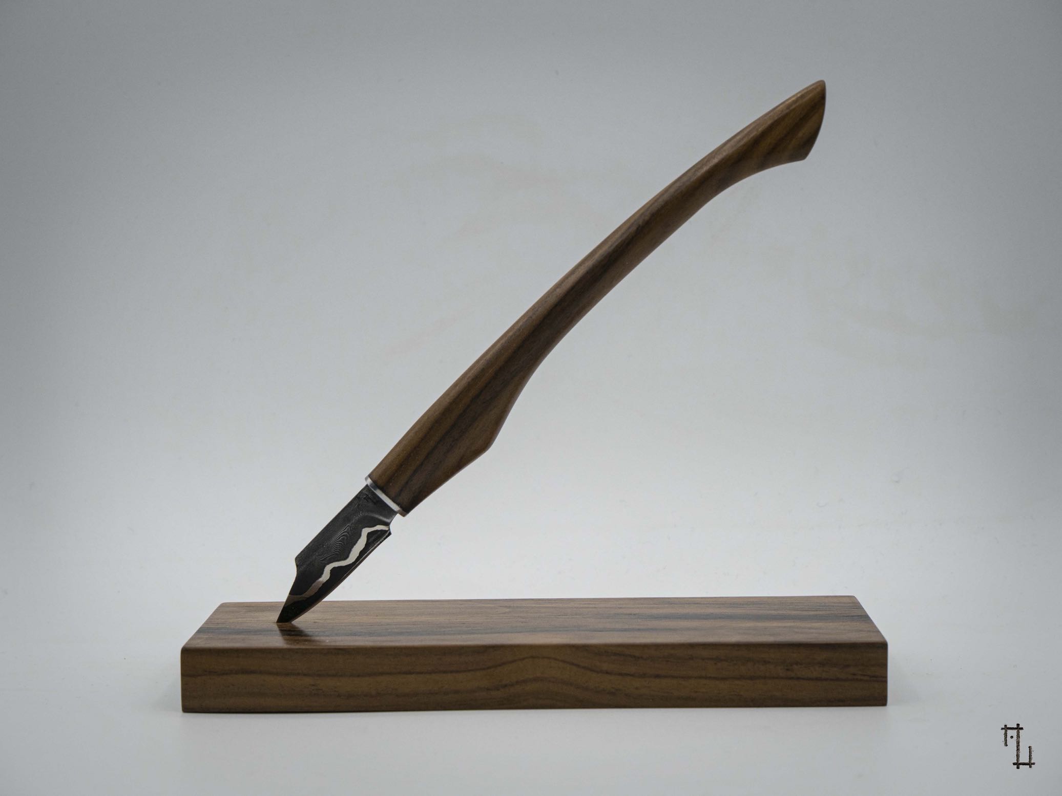 Il primo coltello è potuto nascere grazie all’incontro e confronto con colui che in seguito sarebbe diventato il mio maestro, Roberto Ottonello, storico appartenente alla Corporazione italiana coltellinai. È una persona eccezionale che insieme a Anna, la sua compagna, mi ha spronato a continuare la costruzione di coltelli riconoscendo una forte passione e la voglia di mettermi in gioco. Con i suoi preziosissimi consigli e l’estrema disponibilità nel condividere il suo sapere mi ha introdotto in questo mondo, spingendomi a migliorare ogni aspetto della costruzione giorno dopo giorno, rispettando però l’emergere del mio stile e del mio gusto.