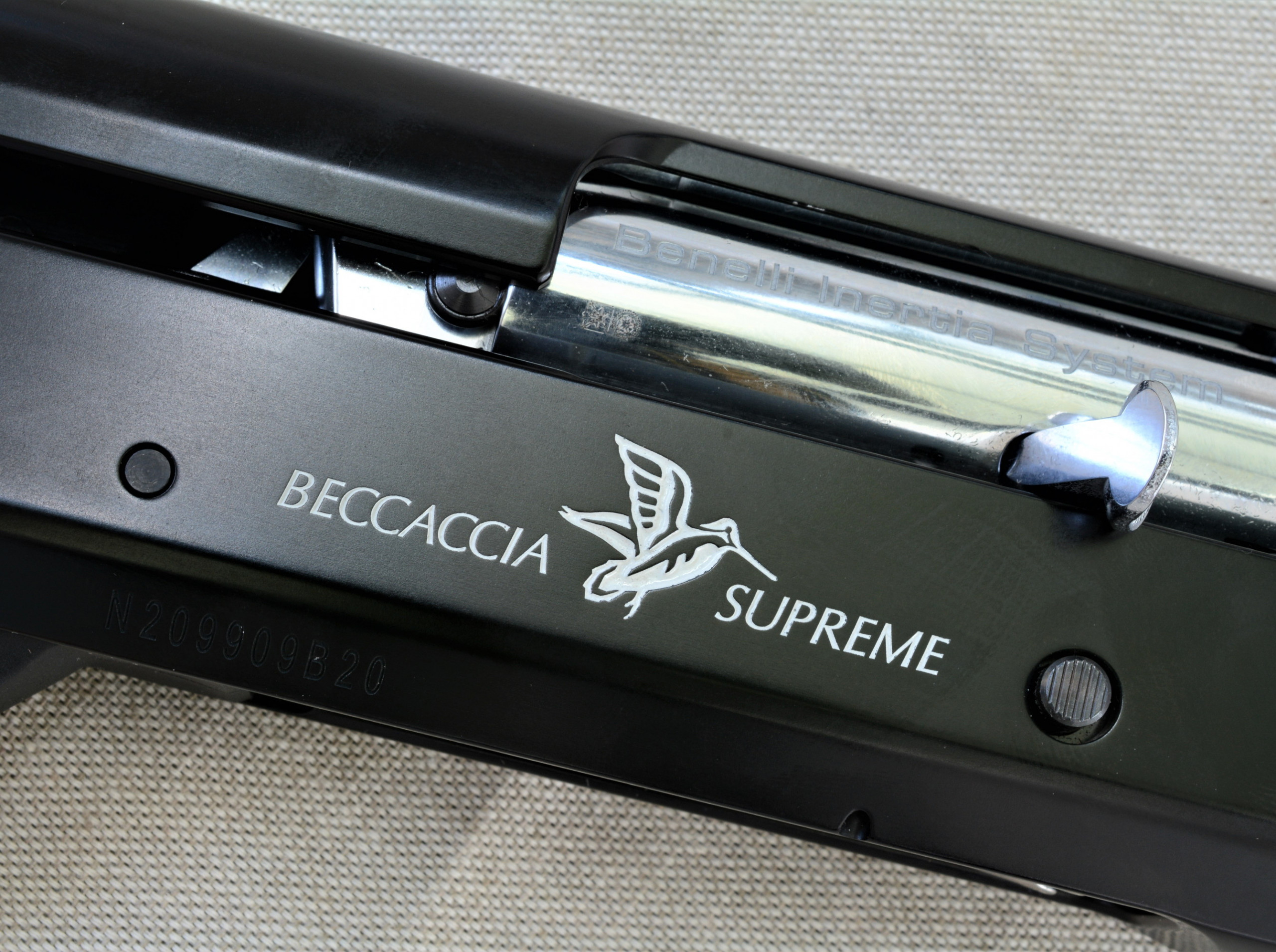 Camerata magnum, la canna del Beccaccia Supreme misura invece 61 centimetri; la dotazione prevede gli strozzatori criogenici (cilindrico, **** e ***). In aggiunta a questa dotazione standard, è disponibile pure lo strozzatore Ampliator del tipo interno-esterno, creato appositamente per questo fucile e grazie alla rigatura interna capace di ampliare e allargare le rosate dei pallini, se si impiegano cartucce idonee allo scopo. Studi condotti in Benelli hanno messo in luce una rosata ottimale per lo strozzatore Ampliator alla distanza di 10 e 20 metri: dunque l’accoppiata strozzatore-fucile è perfettamente idonea all’ingaggio dell’ambita arcera. La canna corta si rivela inoltre la giusta scelta: non penalizza la portata, ma esalta la maneggevolezza del fucile nei luoghi ristretti o angusti quali il folto sottobosco o una vegetazione particolarmente intricata.