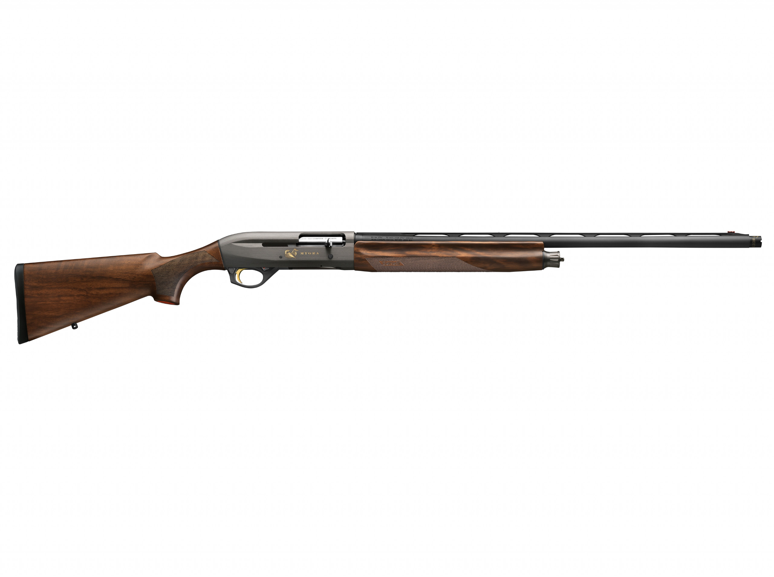 Nel Mygra si hanno a disposizione due tipologie di canna, una da 65 e una da 70 centimetri, sulle quali si possono montare gli strozzatori interni-esterni Wide Shot e Long Shot. Al pari di quanto descritto per il Colombo, sono dedicati a due tipologie di sparo diverse; il Wide Shot si rivela idoneo a ingaggiare selvatici entro i 25 metri, il Long Shot sino a 45 metri di distanza – tiri estremi per il calibro 20. Da segnalare anche che Benelli ha optato per una camera di scoppio standard (70 millimetri) e non magnum, proprio per non snaturare la piacevolezza del tiro e per ottimizzare le rosate.