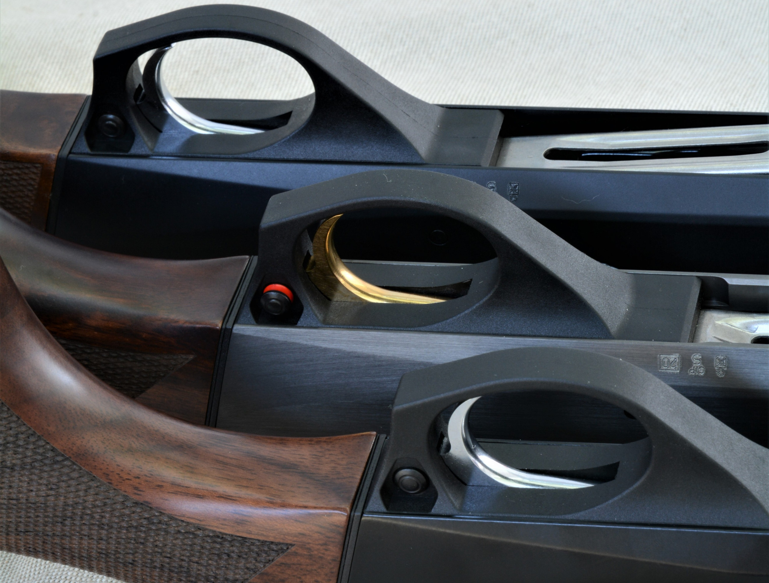 Sono numerosi i punti – come il ponticello, il pulsante della sicura, il cut-off – che accomunano i tre fucili. Il Colombo presenta un’anodizzazione più opaca rispetto agli altri due: il Beccaccia Supreme risulta più lucido, il Mygra adotta la finitura Nature Brown. Tutto ha però un senso logico; il Colombo è il classico fucile da appostamento che, per dimensioni e struttura complessiva, deve essere pronto a sparare diverse cartucce (anche potenti) nell’ambito della medesima uscita venatoria. Una finitura opaca è pertanto non soltanto auspicabile ma anche desiderata, per non incorrere in fastidiosi luccichii o brillii che possono insospettire i diffidenti selvatici in avvicinamento. Parimenti il Beccaccia Supreme se ne può tranquillamente infischiare; la caccia con il cane da ferma presuppone che noi ci avviciniamo al selvatico. Il Mygra rimedia al problema dei riflessi, spenti sul nascere, con la nuova colorazione.
