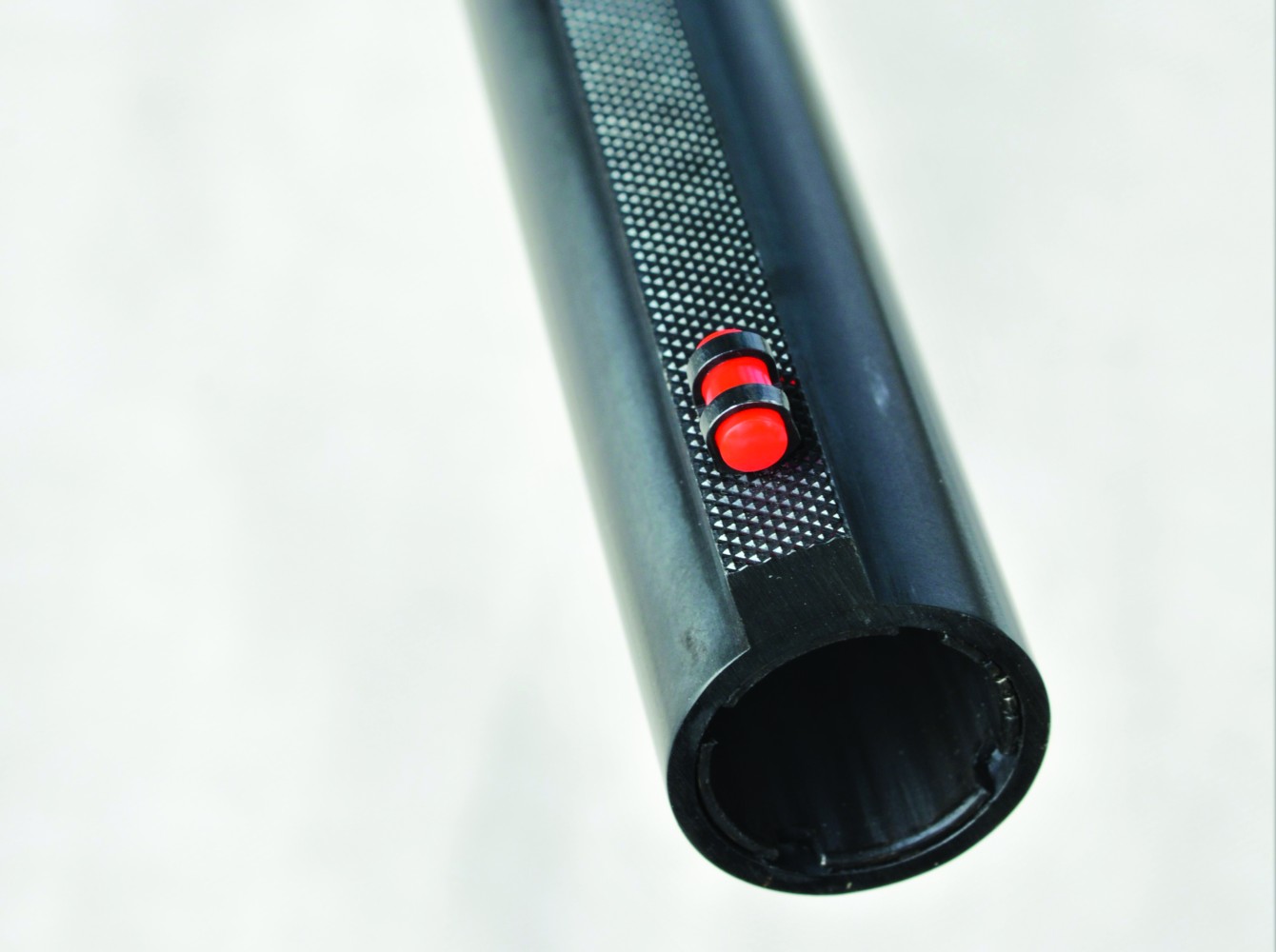 La canna è ottenuta con procedura Steelium che prevede acciaio trilegato NiCrMo, foratura profonda, martellatura a freddo e distensione sottovuoto. A completare la geometria contribuisce la realizzazione di un cono di raccordo allungato (80 millimetri per una canna di 760 millimetri di lunghezza). Questa conformazione garantisce un funzionamento con minor rinculo e una migliore distribuzione dei pallini. La canna è denominata Optimabore Hp e accoppiata agli strozzatori Optimachoke Hp. In dotazione ne sono forniti tre, purtroppo serviti da una chiave che meriterebbe un upgrade dal punto di vista estetico.