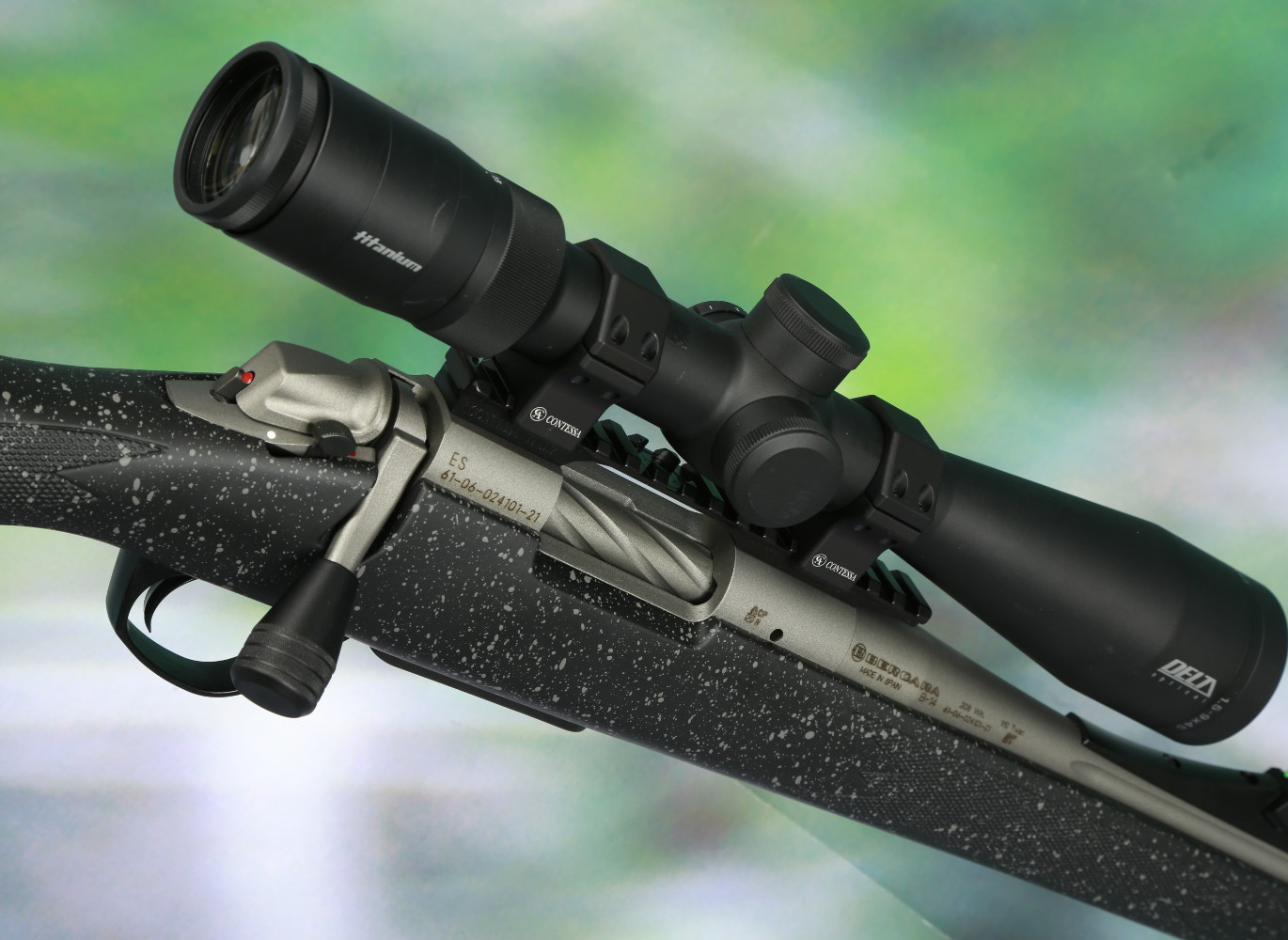 La Bergara B14 Hunter extreme series calibro .308 Winchester è una carabina bolt-action leggerissima e ultracompatta (la canna è lunga soli 18 pollici, 457 millimetri), resistente agli agenti atmosferici grazie all’impiego estensivo dell’acciaio inox con copertura Cerakote Stainless grey; il calcio sintetico, con trattamento soft touch nero, presenta una marezzatura bianca e pala a profilo dritto, tipicamente americano. Per la nostra prova la Redolfi armi di Manerbio (Bs), distributore italiano di Bergara, ci ha fornito un’eccellente slitta monolitica Picatinny Contessa e un cannocchiale Delta Titanium 1,5-9×45, particolarmente azzeccato con lo spirito dell’arma sia per ingombri e pesi generali sia per ingrandimenti.