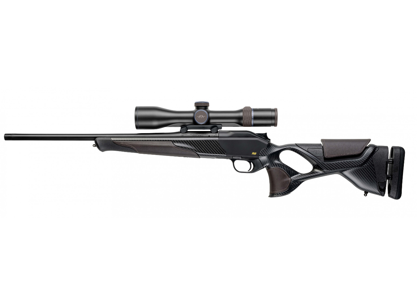 L’ultima evoluzione della celebre carabina a riarmo lineare Blaser R8 è rappresentata dall’allestimento Ultimate Carbon Leather, lussuoso e tecnologico, caratterizzato da una calciatura innovativa realizzata completamente in fibra di carbonio, leggera e al contempo resistente. La calciatura ha profilo di tipo thumbhole, con inserti in vera pelle in corrispondenza dei punti di presa sull’astina e sulla pistola (ma è disponibile anche la versione Ultimate Carbon priva di inserti in pelle). La calciatura è compatibile anche con il poggiaguancia regolabile, con il sistema di riduzione del rinculo e quello di regolazione della calciatura.
