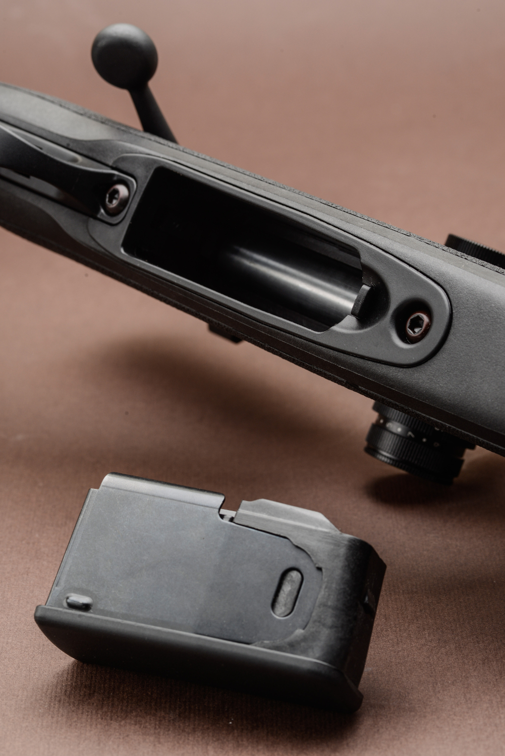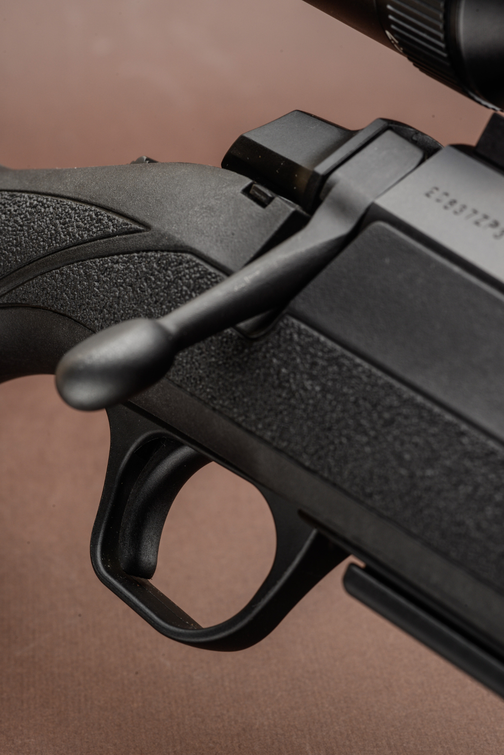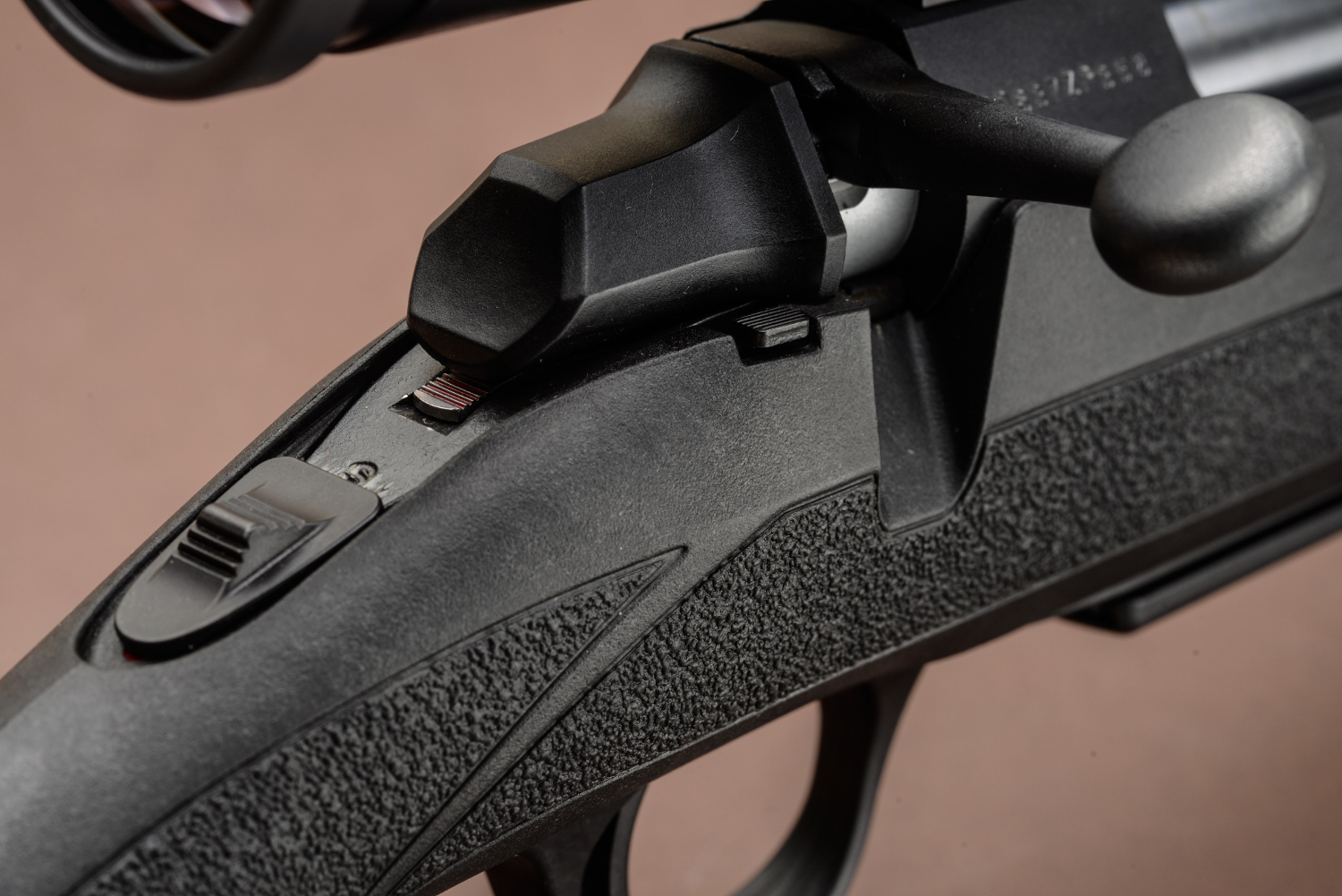 Lo scatto, per il quale il produttore dichiara un peso di sgancio compreso tra le 2 e le 4 libbre, è netto e si avvale di un’appendice realizzata in polimero, così come la guardia e il caricatore estraibile. L’azione dispone dei punti di aggancio per gli anelli dell’ottica, indispensabile in quanto l’arma è priva di mire metalliche. Due anelli d’acciaio sono inclusi nella confezione di vendita. La finestra di espulsione è ampia e aperta anche superiormente, così da facilitare tutte le operazioni di sparo e il caricamento dall’alto.