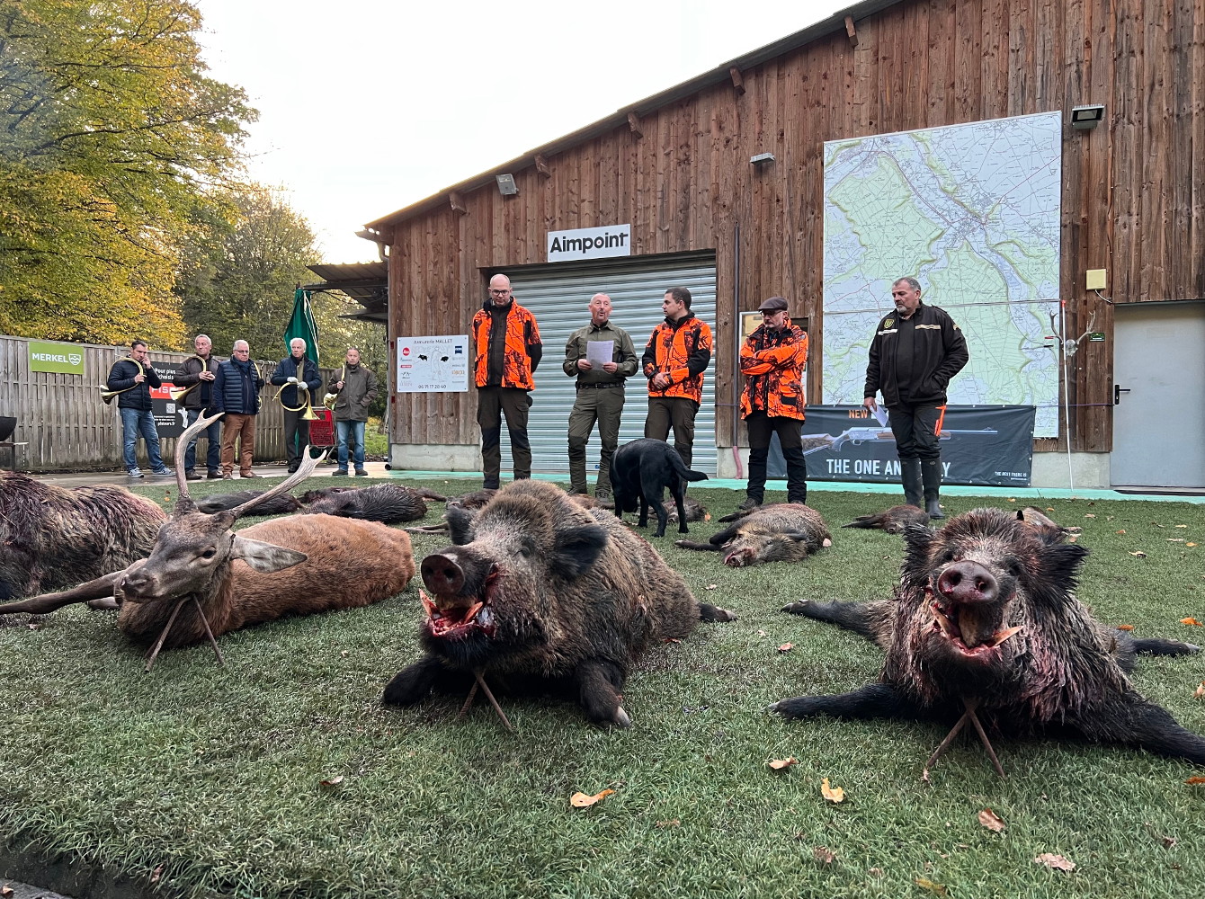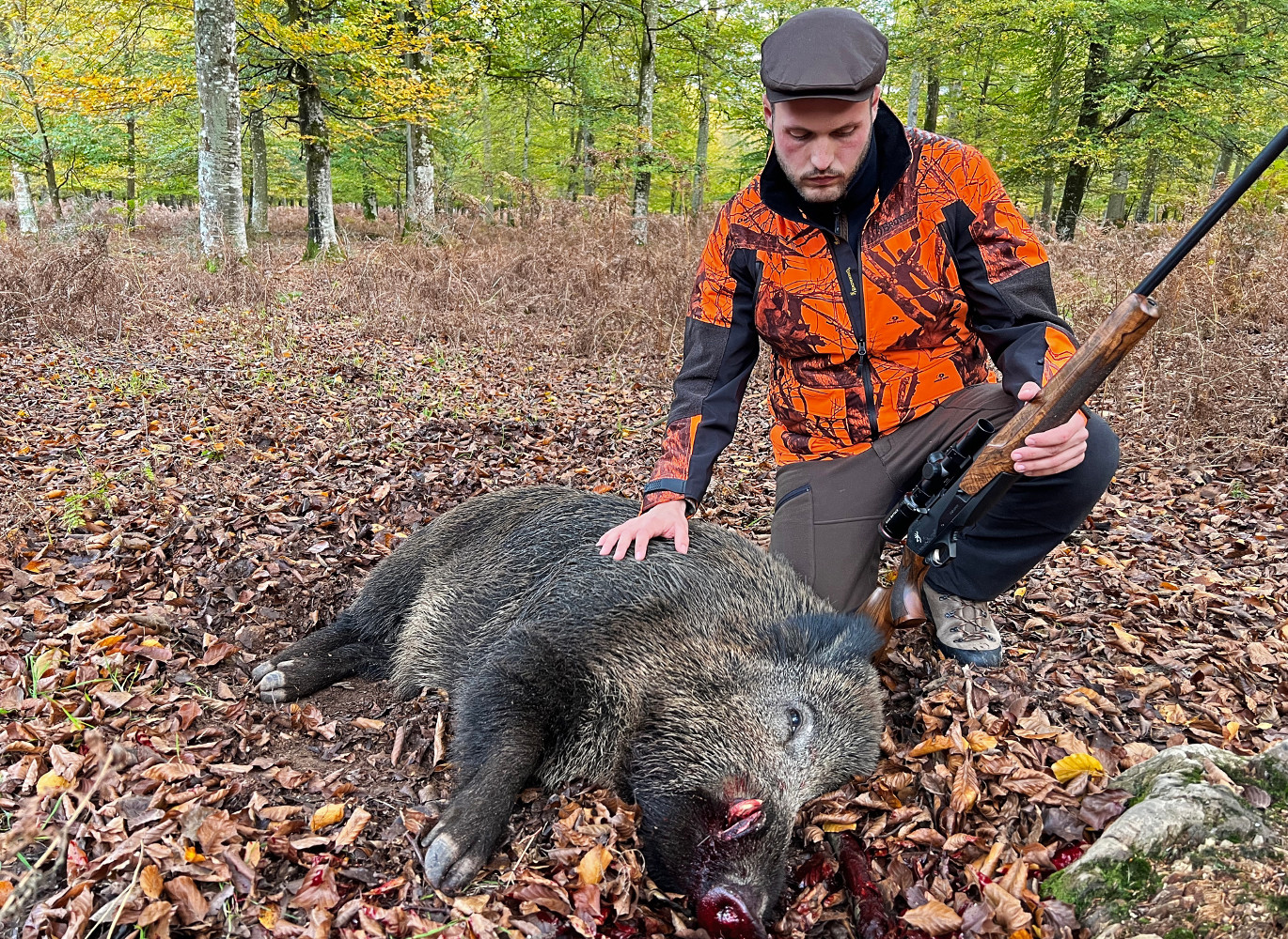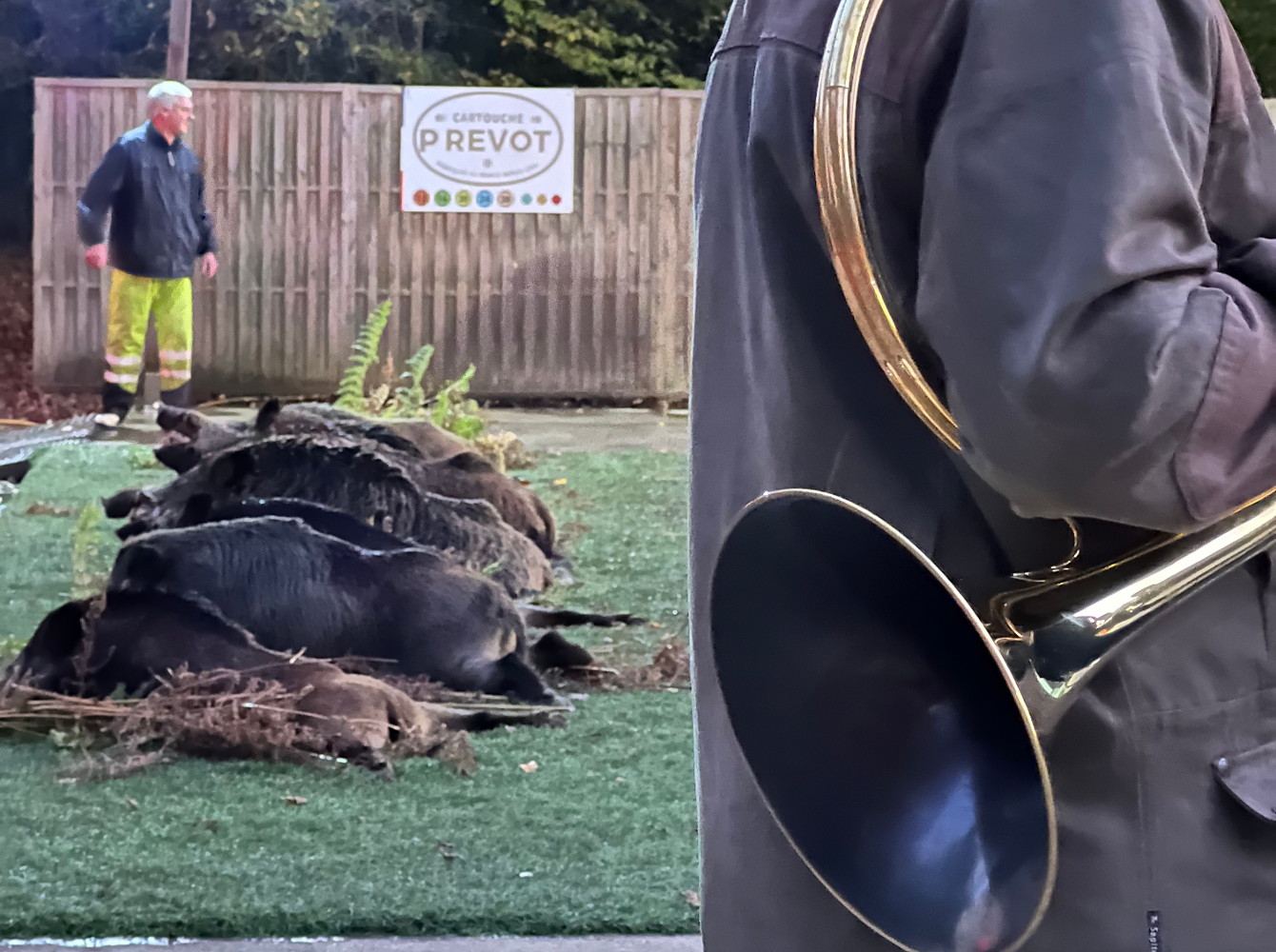 Il colpo ha attinto il cinghiale al centro del collo, proprio dove avevo mirato, per un abbattimento rapido e il più possibile etico. È di gran lunga il più grosso che abbia mai prelevato, un esemplare davvero imponente, con un trofeo decisamente rappresentativo della specie. La giornata si conclude sulle note di Les honneur, suonata con i corni da caccia durante la cerimonia del tableau de chasse, per onorare la selvaggina abbattuta.