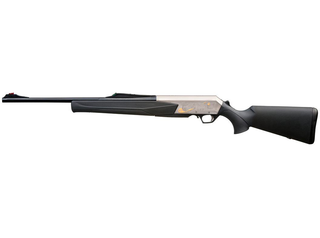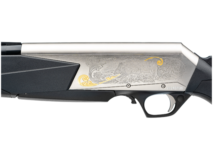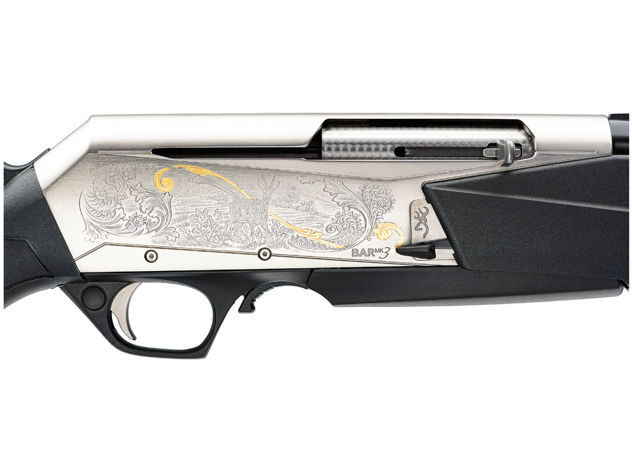Fregi in oro e doppia incisione (a destra un cervo, a sinistra un cinghiale) sulla bascula con finitura nichelata, calcio a pistola in materiale composito nero, lo stesso dell’astina: si presenta così la Bar Mk3 Eclipse Gold Hc, la nuova carabina semiautomatica di Browning che la produrrà in edizione limitata. Sulla canna fluted da 530 millimetri è stata spalmata una finitura opaca.