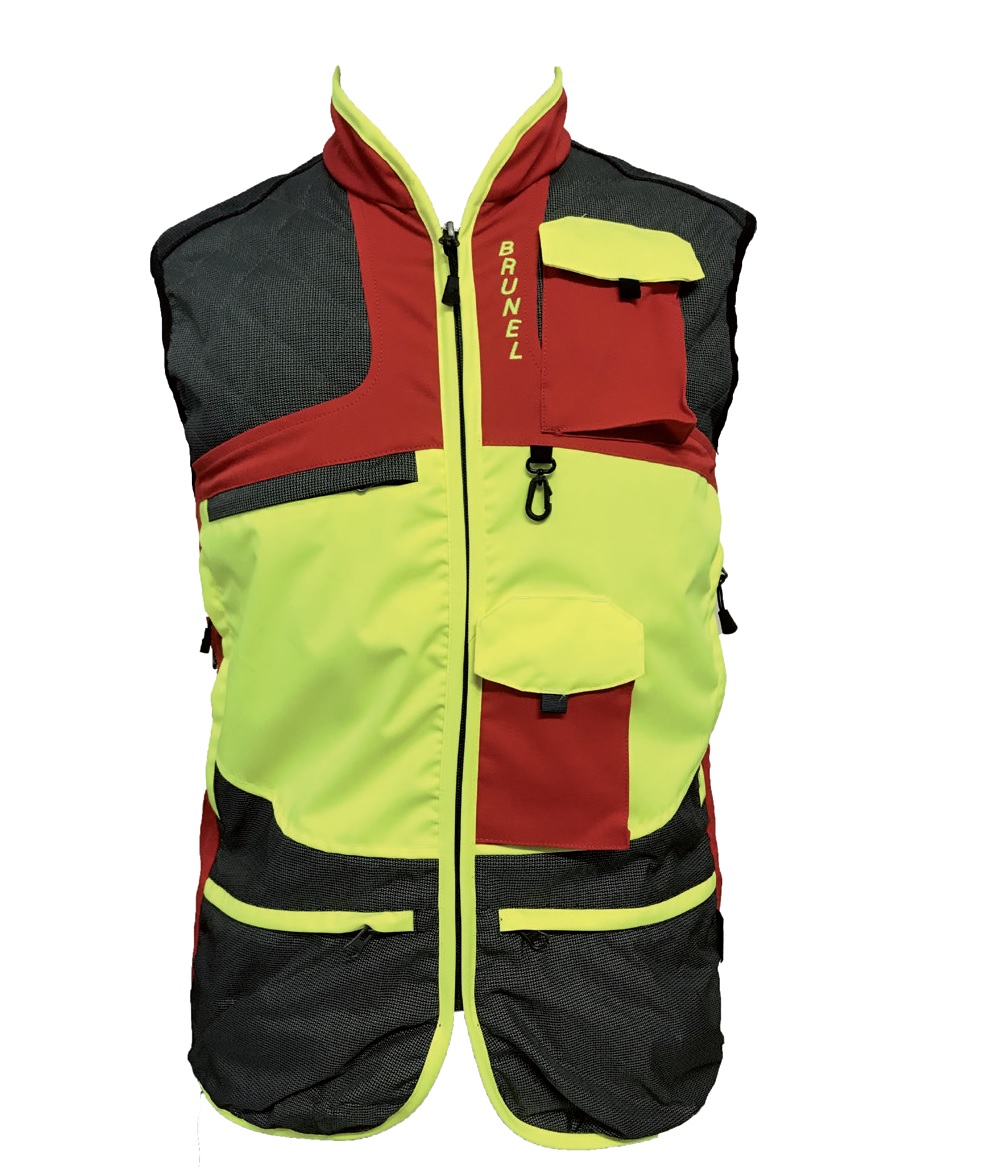 Brunel Conductor Red è un gilet appositamente studiato e prodotto per i conduttori di cani da recupero. Realizzato in tessuto S idro ad alta visibilità, sfoggia protezioni kevlar e microcordura sia nella parte bassa, davanti e dietro, sia in quella alta, con una leggera imbottitura sul trapuntino per assorbire il rinculo dell’arma. Il gilet, foderato all’interno con una rete termica antisudore, dispone di un gran numero di tasche: due anteriori con soffietto e zip, due laterali scaldamano, una a petto orizzontale, due sulla parte sinistra con cappuccio preformato e, ancora, due posteriori con carniere foderato, due portaborraccia e una interna per i documenti.