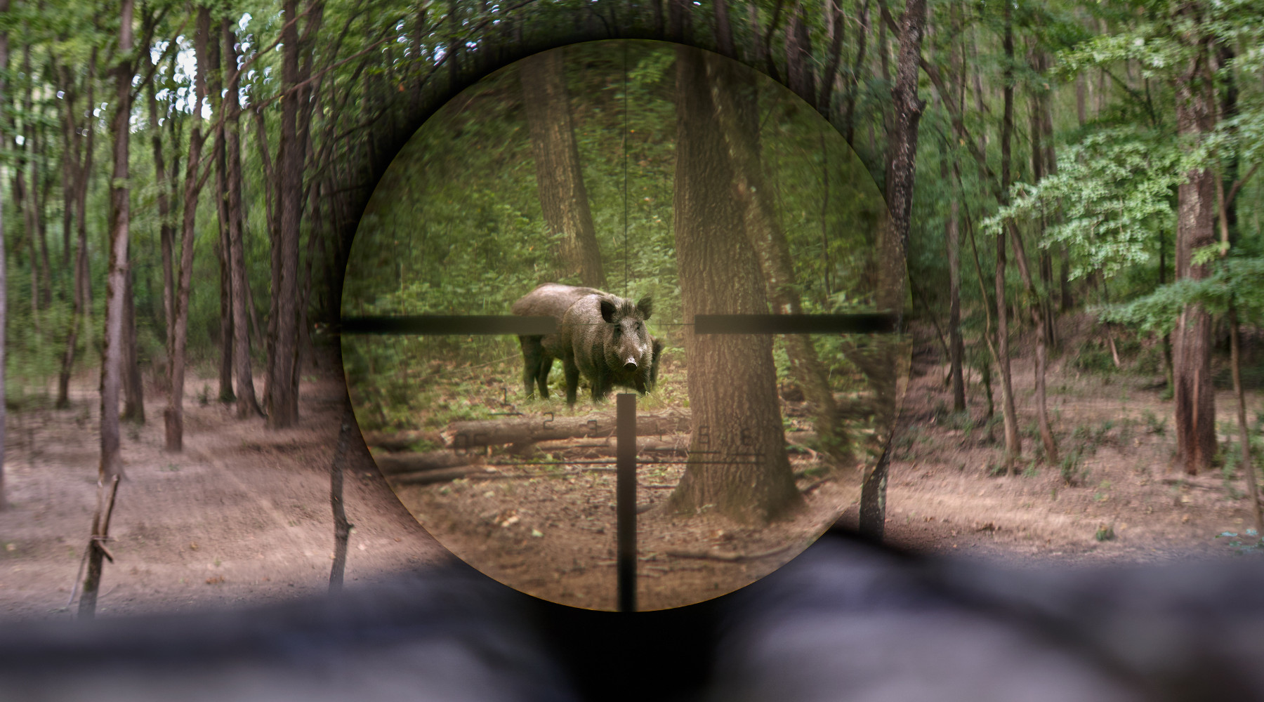 Caccia al cinghiale in Toscana: cinghiale nel mirino di una carabina