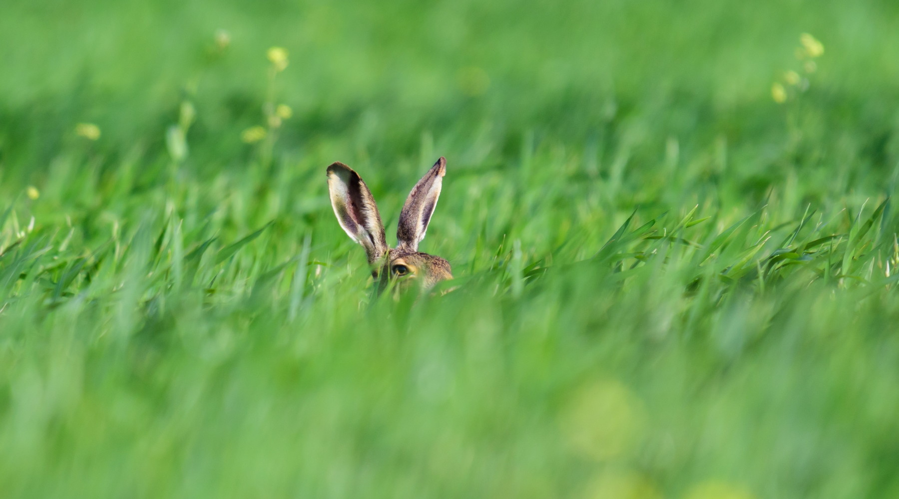 Caccia alla lepre italica, integrato il calendario venatorio della Sicilia: orecchie di lepre nell'erba