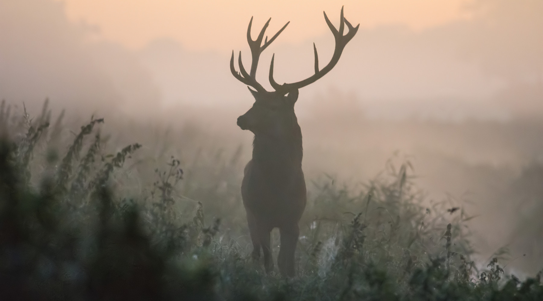 Caccia di selezione in Umbria: cervo nella nebbia, visto frontalmente
