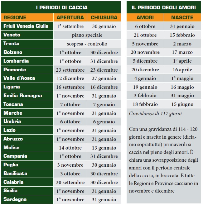 È chiara una sovrapposizione degli amori con il periodo centrale della caccia, in braccata. E tutte le Regioni e Province cacciano in novembre e dicembre.