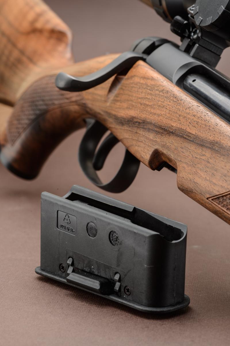 Niente di nuovo sotto il sole ma, a differenza di altri sistemi, quello della carabina Steyr è veramente raffinato nella realizzazione. Nuovo è anche lo scatto, regolabile anche se le istruzioni non forniscono indicazioni al riguardo. Dispone di stecher alla francese che si attiva spingendo il grilletto in avanti e riduce da 830 a 265 grammi il peso di sgancio. Bello, pulito, è forse superfluo in un’arma che è già dotata di un meccanismo tanto sofisticato. A nostra impressione, lo scatto alleggerito è addirittura troppo sensibile per il cacciatore medio.