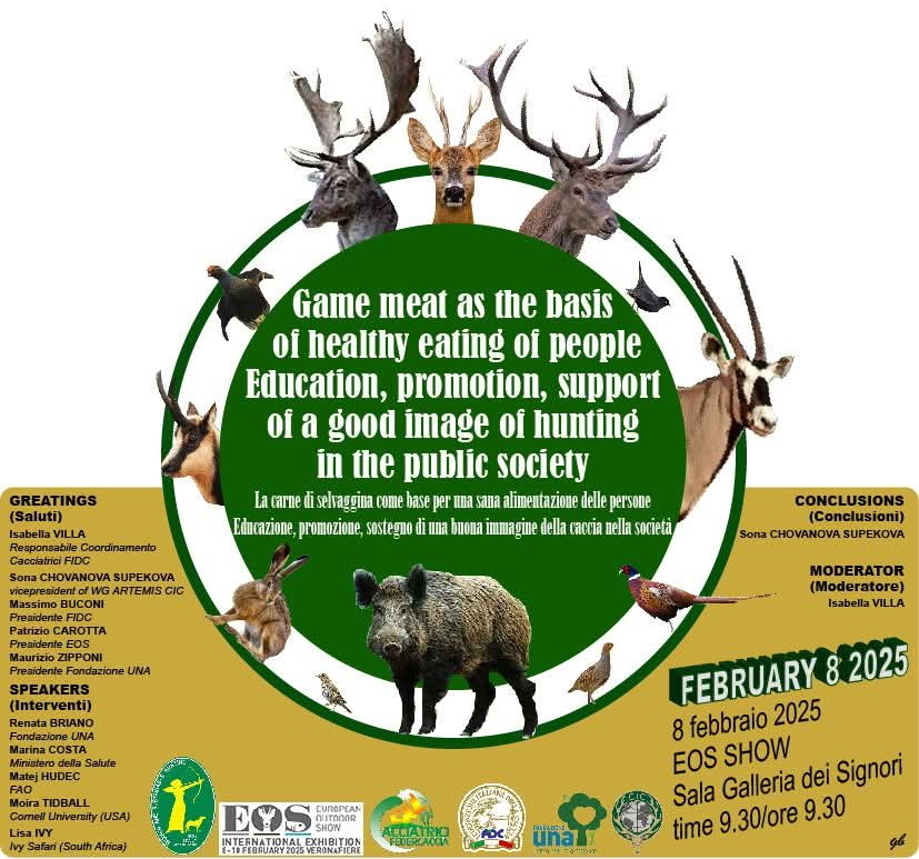 In vista di Eos 2025 il Coordinamento cacciatrici Federcaccia ha organizzato un convegno sulla carne di selvaggina e sulla buona immagine della caccia nella società.
