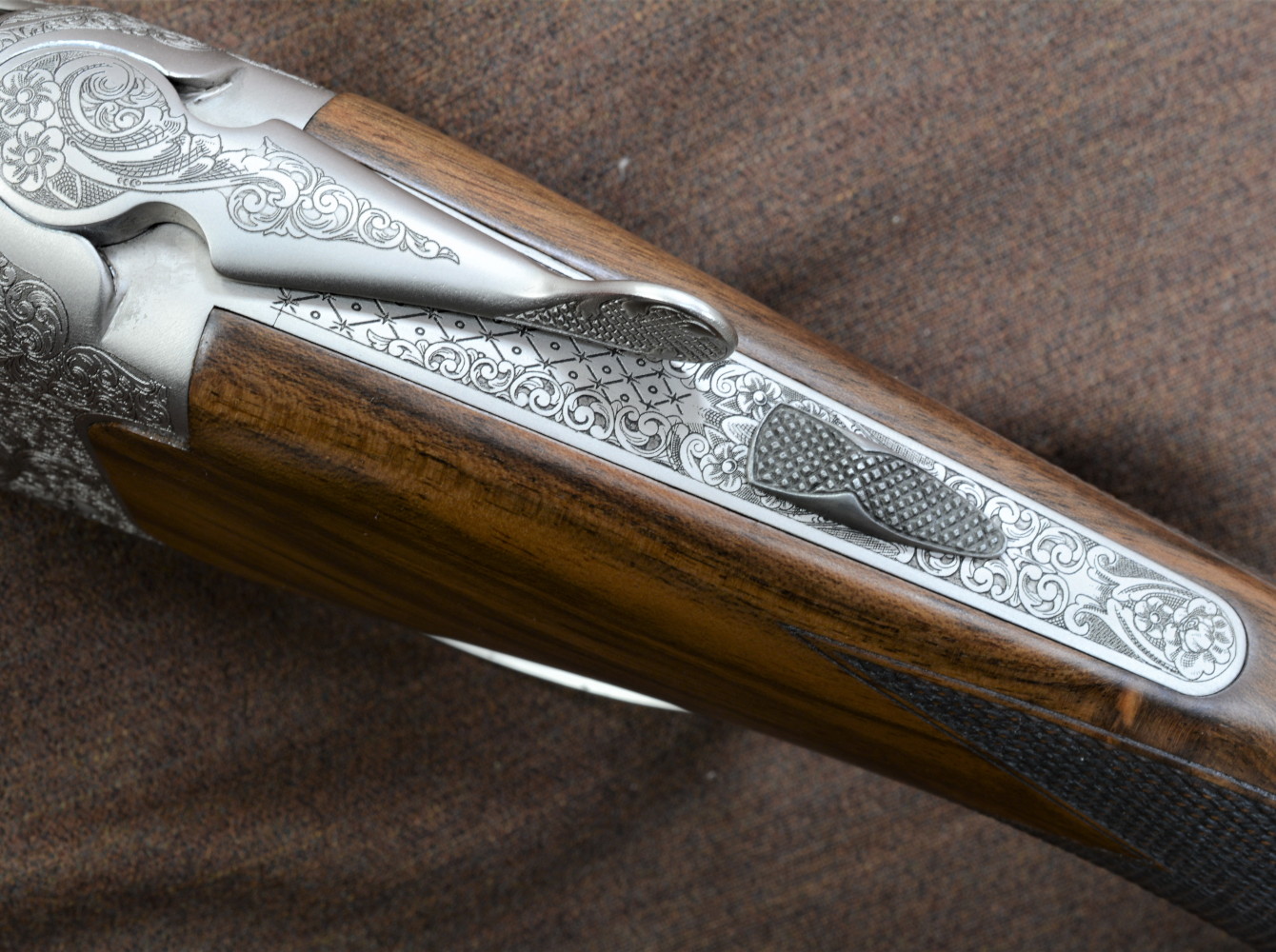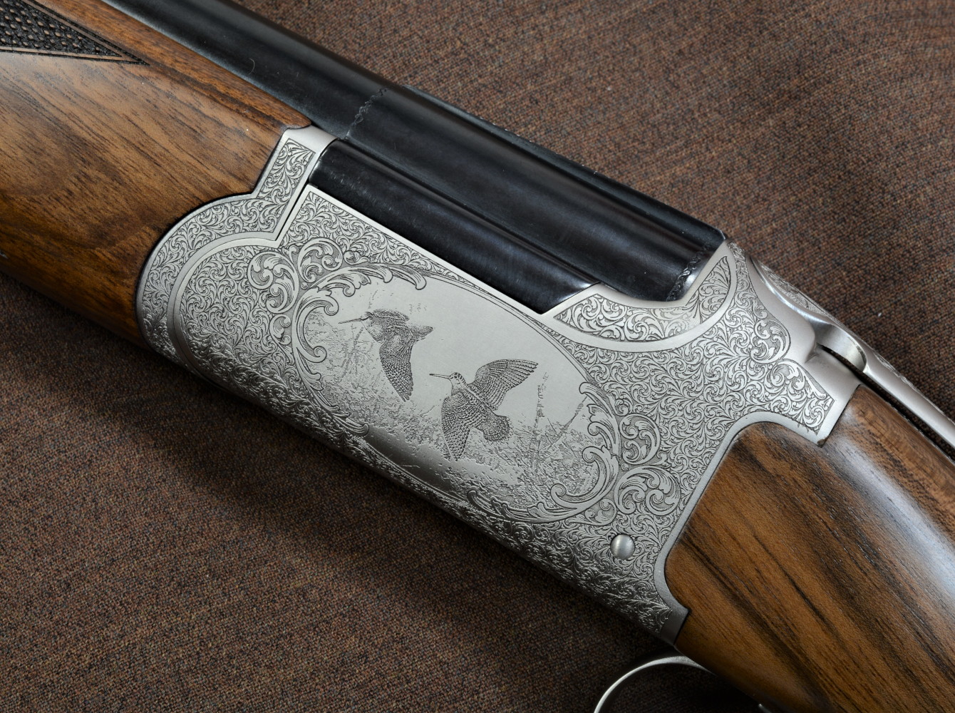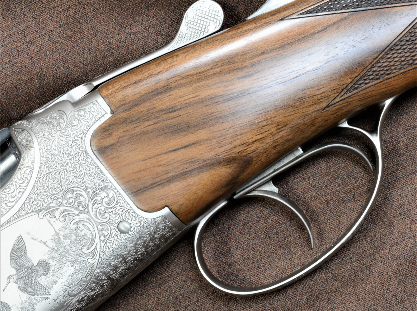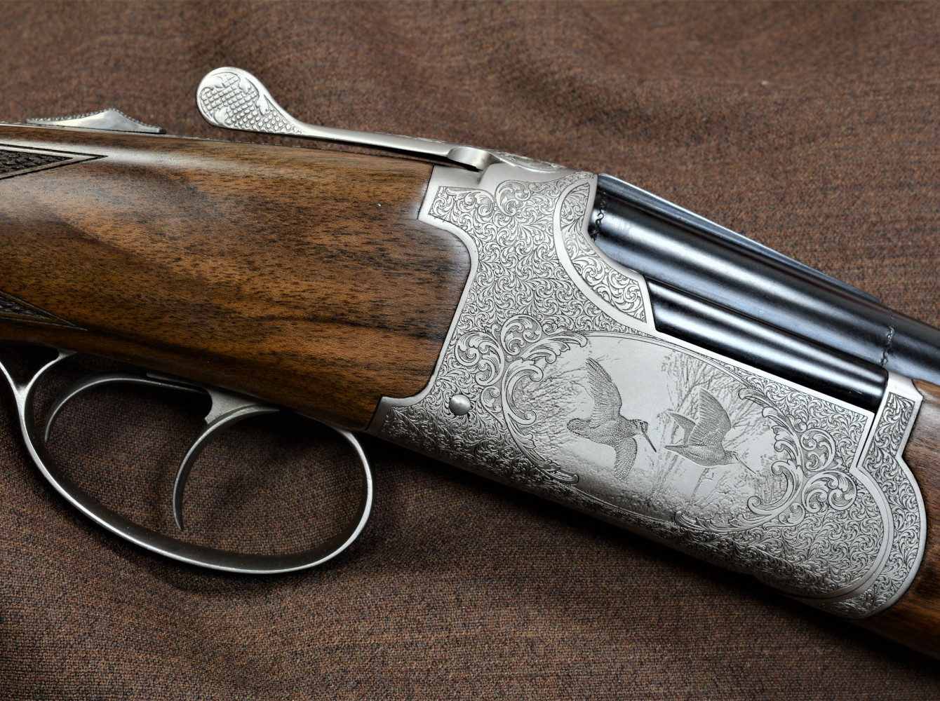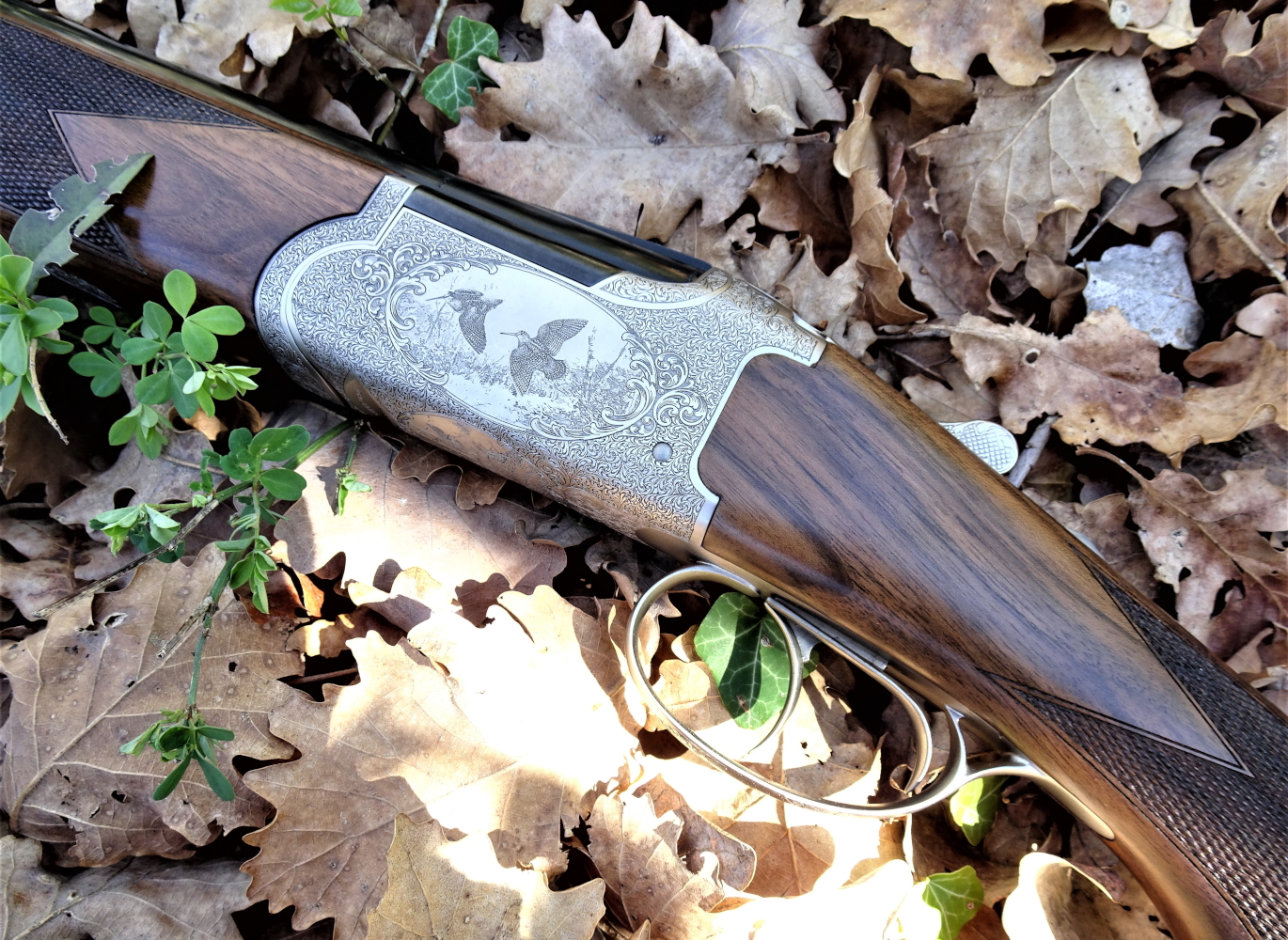 Un fucile sovrapposto da caccia con le beccacce incise sulla bascula