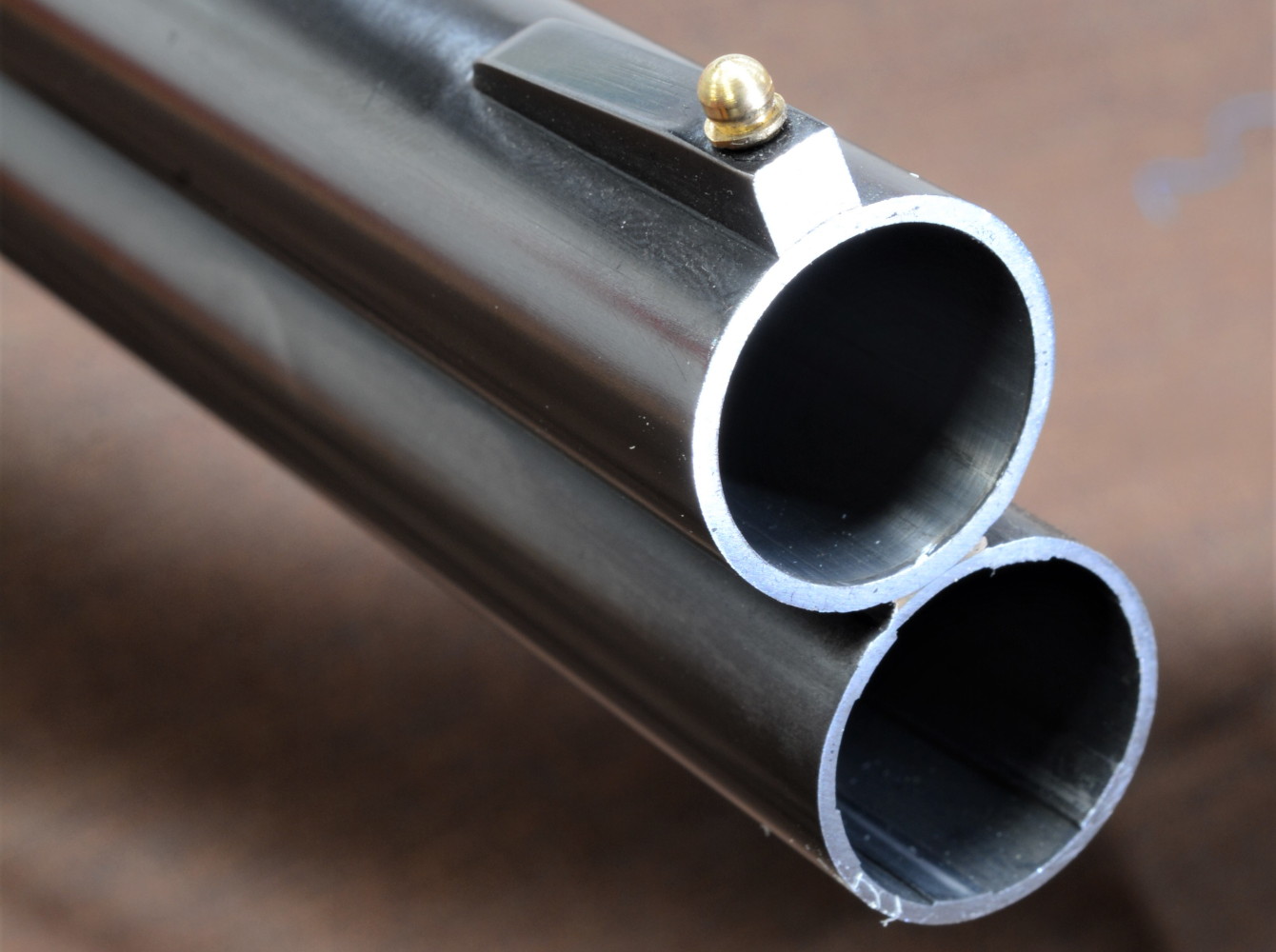 Non è presente la bindella superiore, ma soltanto un accenno appena abbozzato (sembra un inizio di bindella tipo Saint-Etienne) sul monobloc e una piccola rampa in volata che ospita il mirino puntiforme in ottone. Non ci sono i bindellini laterali, piuttosto inutili in effetti. Le canne sono assemblate su un monobloc (si vede il cordoncino di saldatura), con foratura di 18,4 millimetri per la prima e 18.5 millimetri per la seconda. Sono camerate magnum, ma il consiglio è d’utilizzare munizioni da 70 millimetri di lunghezza, standard. I tubi sono bancati con il giglio di Francia per lo sparo di munizioni caricate con materiali alternativi al piombo.