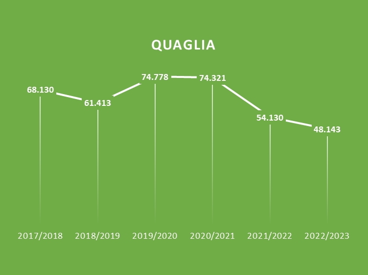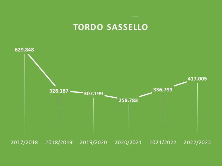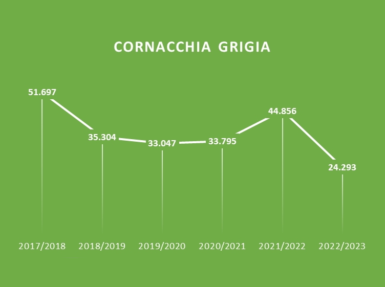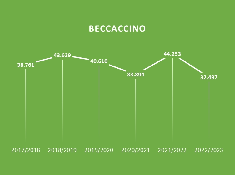 Anche se le cautele, come le premesse, sono multiple (non tutte le Regioni hanno trasmesso i dati completi – anzi, l’Umbria non l’ha mai fatto; sono poche le informazioni sulla percentuale di tesserini analizzati in proporzione a quelli rilasciati; resta escluso il bracconaggio, il cui impatto difficilmente si può quantificare), è molto interessante ciò che emerge dal report dell’Ispra sulla caccia all’avifauna tra il 2017/2018 e il 2022/2023 (non il 2023/2024: lo scorso 31 ottobre solo Valle d’Aosta, Piemonte, Abruzzo, Campania e Sardegna erano in pari).