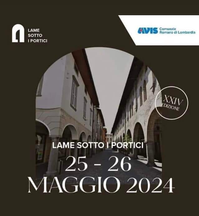 “Lame sotto i portici”, mostra di coltelleria custom giunta alla 24esima edizione, torna oggi e domani, 26 maggio 2024, a Romano di Lombardia (Bg).