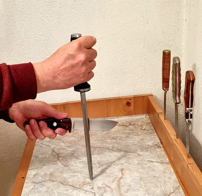 Corretto uso dell’acciaino, strumento valido per rettificare le imperfezioni più grossolane, ma non certo per un’affilatura definitiva