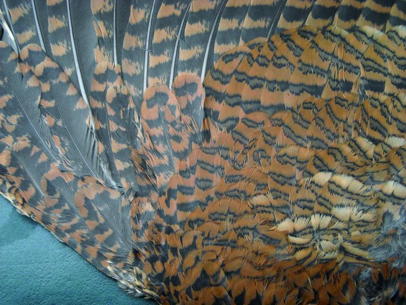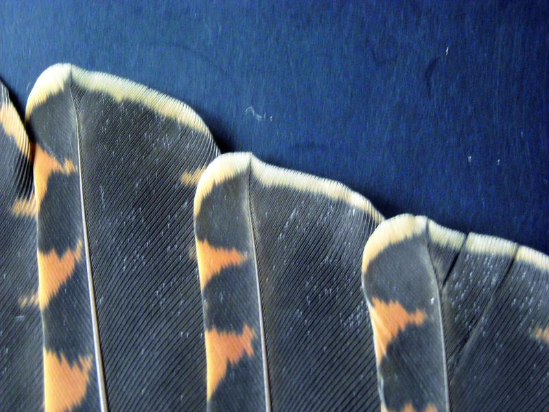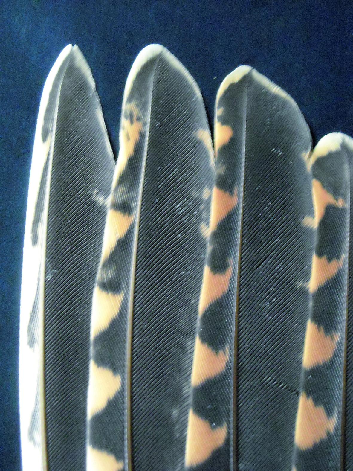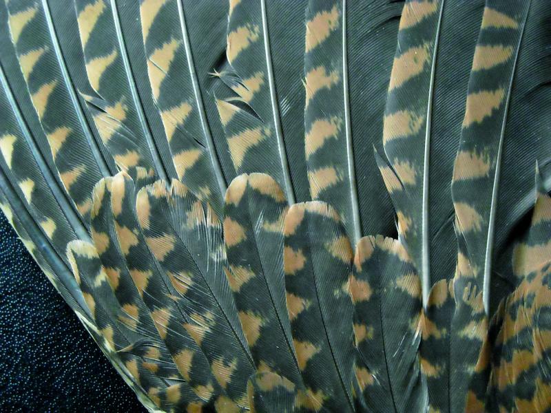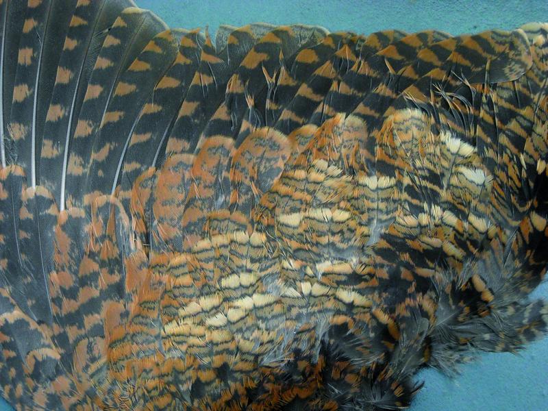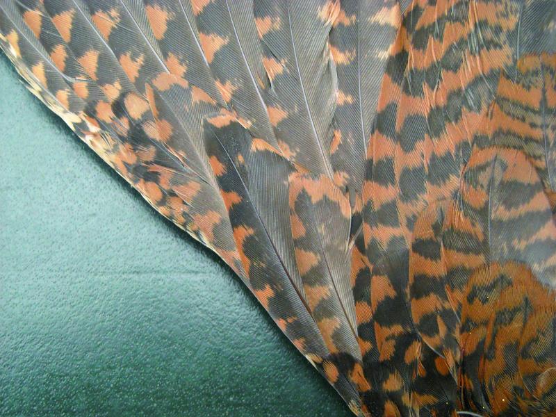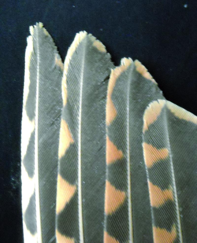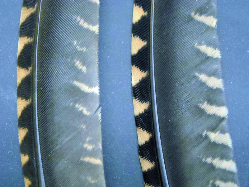 Lettura. L’ala così preparata si presenta davanti i vostri occhi come un mazzo di carte aperto. Il pollice della mano destra appoggia sullo snodo carpale, esattamente dove confluiscono le grandi copritrici primarie e secondarie. Con le dita della mano sinistra si procede a lisciare le penne, eliminando ogni sovrapposizione. Si sottopone l’ala a una fonte luminosa fissa e ravvicinata (30 cm) in modo tale da evitare errori nella percezione delle sfumature dei colori.
