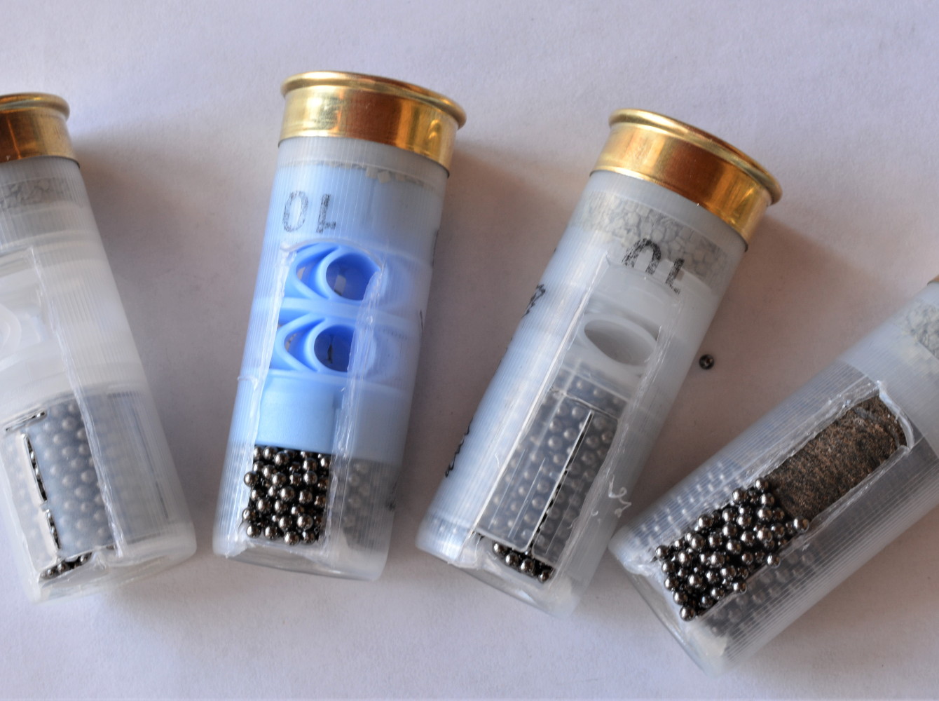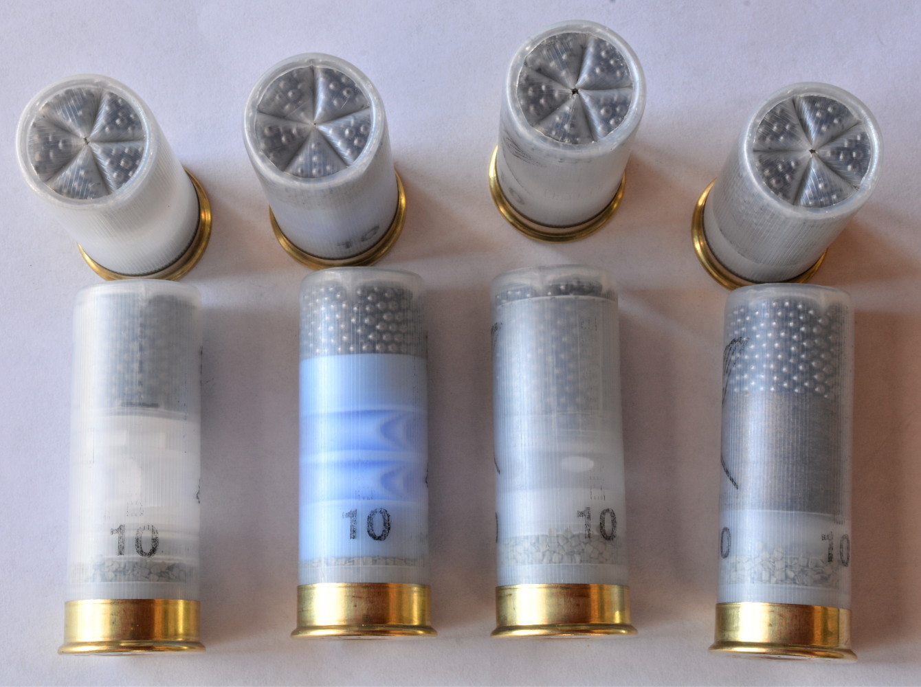 I pallini li abbiamo dosati in 28 grammi, nella numerazione 10 (1,9 mm di diametro), per tutte le soluzioni proposte. È una grammatura non esagerata (molto vicina all’oncia inglese: 28,35 grammi), che rende molto sul campo di caccia in svariati contesti venatori e sui selvatici. Oltretutto ben difficilmente risulta punitiva per la spalla, anche se sparata in grandi quantità. Standard la qualità del piombo, con pallini di buona uniformità dimensionale, sfericità e lucentezza. La chiusura è eseguita con una classica stellare ma a cinque pliche.