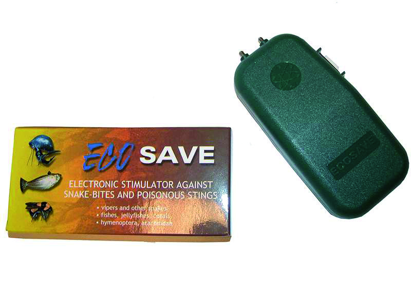 Contro i morsi di vipera c’è Eco Save (distribuisce Scubla), stimolatore a due elettrodi che produce scariche elettriche a elevato voltaggio e basso amperaggio dalla durata di un centesimo di secondo, con pause regolari di un secondo. Gli elettrodi devono essere inizialmente appoggiati sui due forellini lasciati dai denti della vipera: è qui che bisogna rilasciare la prima scarica. Poi s’effettua un movimento circolare facendo perno su uno dei due forellini e si rilasciano da tre a sette scariche; identica la procedura sulla seconda ferita.