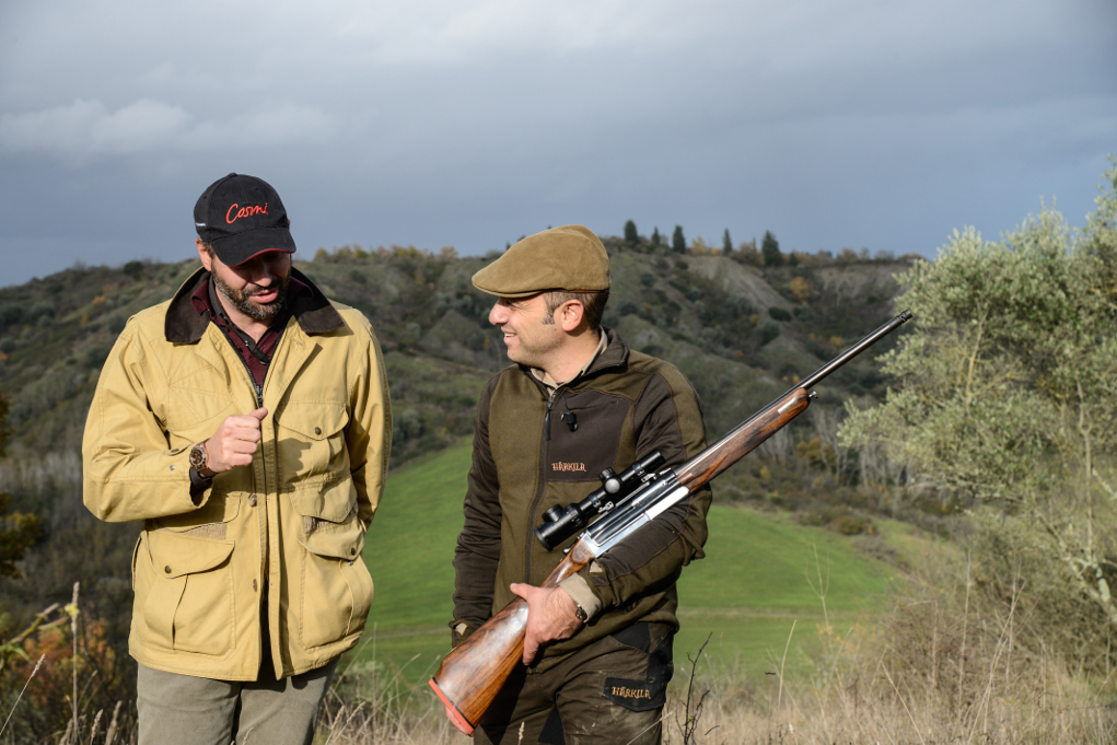 Ci incontriamo a La Canonica, un’Azienda agri-turistico venatoria gestita da Salvatore Leanza di Caccia Toscana, a Certaldo, non lontano da Firenze. L’occasione è di quelle che non si possono rifiutare. Si proveranno sia la nuova doppietta – originariamente presentata nel 1920 e oggi a catalogo in una riedizione molto raffinata – sia il rigato. Mattina a fagiani, con la doppietta nelle mani del nostro Simone Bertini e un semiautomatico in calibro 20 nelle mie, pomeriggio alla cerca di un cinghiale con la responsabilità dell’unico esemplare Cosmi rigato disponibile tra le mani.