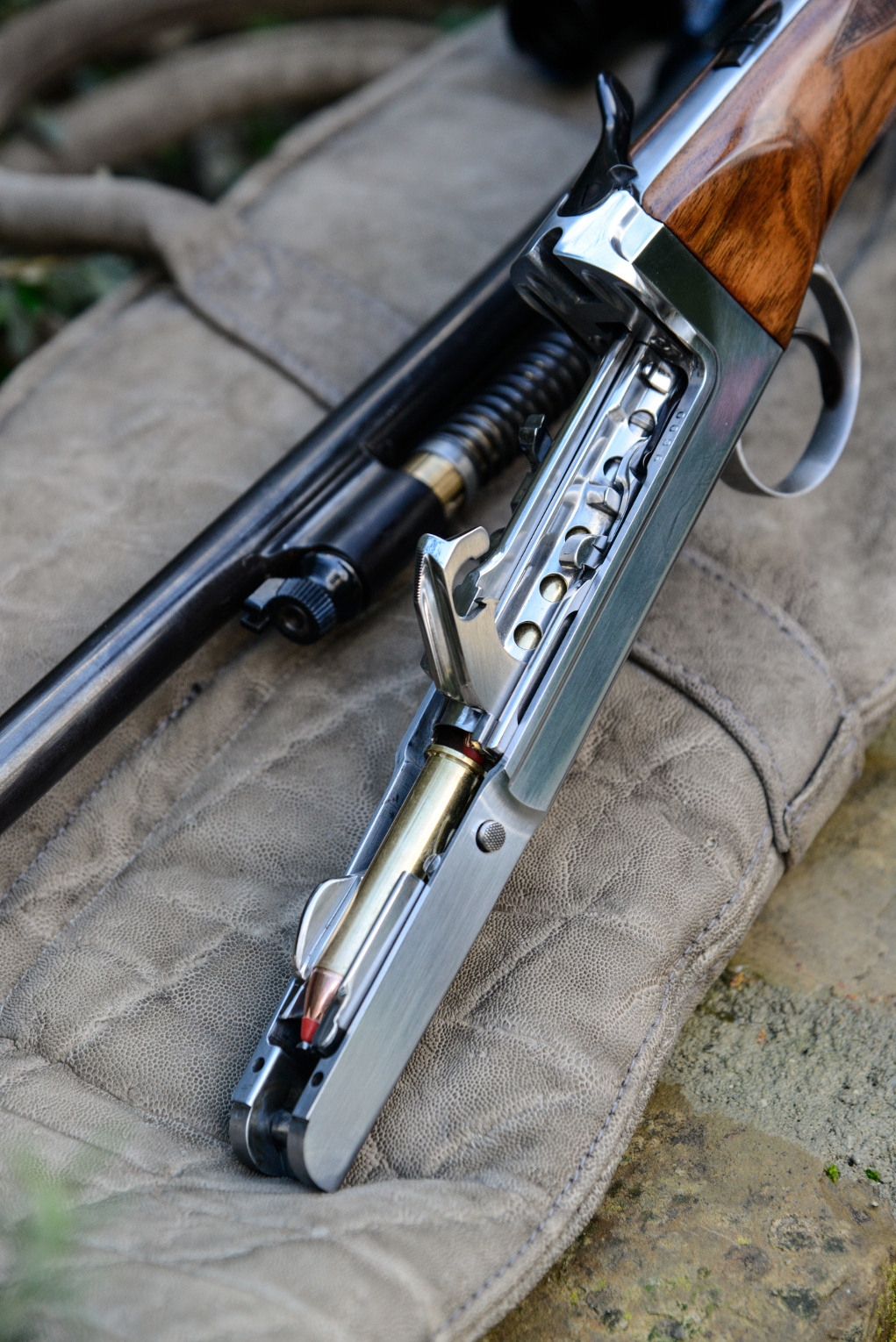 Lo sviluppo del Cosmi rigato ha imposto alcune modifiche. Anzitutto si è scelto di partire dalla bascula del 28, quella dimensionalmente più adatta a ospitare i calibri da carabina. La presenza del serbatoio tubolare ha imposto la scelta di calibri lever action. È infatti più facile evitare accensioni indesiderate come conseguenza del rinculo dell’arma o di urti particolarmente violenti. La corazza risulta essere rinforzata anche se l’esperienza e tutti gli stress test cui l’arma di prova è stata sottoposta hanno indicato che le quote originariamente prescelte siano addirittura eccessive. Il tutto è realizzato in acciaio di massima qualità con finiture a scelta del cacciatore. In mancanza di incisioni, è comunque prevedibile che venga rispettata la livrea bicolore che affianca alla brunitura superfici trattate a specchio. Rinforzato è anche l’otturatore, che deve resistere a pressioni superiori.