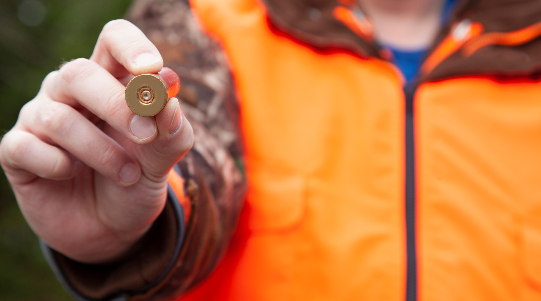divieto di usare munizioni in piombo: cacciatore con munizione in mano