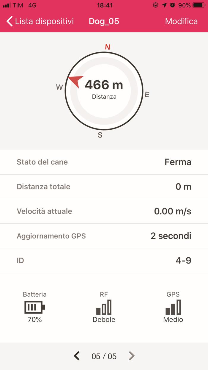 Una funzione molto utile e interessante è quella che ci permette di condividere i nostri collari e quelli di un nostro amico, e allo stesso tempo di condividere la nostra posizione e la posizione del nostro compagno. Il tutto verrà mostrato nella lista dispositivi dove un’icona visualizzerà il nostro dispositivo, lo stato dei collari e la distanza in metri, e anche il dispositivo e la distanza del nostro compagno. Selezionando il collare si entra nella schermata dove sarà possibile ricevere tutte le informazioni dettagliate del collare selezionato. Sulla bussola sarà mostrata una freccia che indicherà la posizione del cane e la distanza in metri. Sotto sarà indicato lo stato del cane e la distanza totale percorsa, la velocità rilevata in quel momento e l’aggiornamento del Gps. Nella parte bassa dello schermo sarà invece possibile consultare lo stato della batteria del collare, il segnale radio e il segnale Gps. Una freccia, infine, permettere di passare da un collare all’altro.