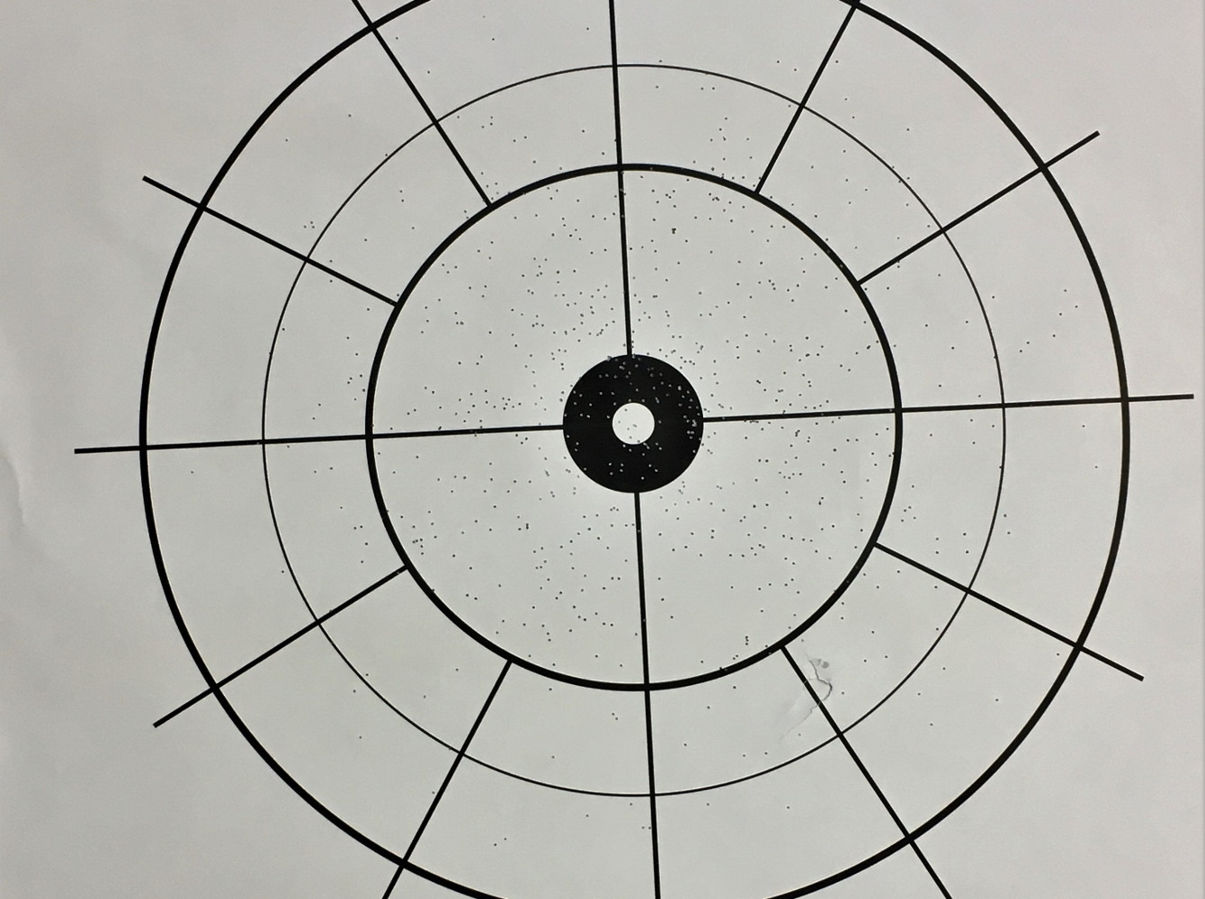 Ho infine concluso con lo sparo di munizioni spezzate, con una cartuccia calibro 12 Winchester caricata con 33 grammi di piombo numero 10 e una cartuccia Clever calibro 20 con 28 grammi di piombo numero 10, alla distanza di 10 metri.