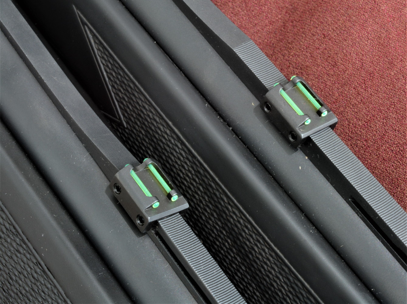 Ventilata a ponticelli stretti, la bindella è rabescata antiriflesso e termina con un bel mirino in fibra ottica di colore rosso della Lpa, molto visibile in ogni condizione di luce ambientale. Considerando che il Delta Soft Touch è un’arma da bosco, direi che la scelta è appropriata. Non solo: all’inizio della bindella, nei pressi della piccola rampa iniziale, è presente anche un collimatore utilissimo, almeno nella caccia al cinghiale; è rappresentato da un piccolo pezzetto metallico che incorpora agli estremi, ai lati della bindella, due inserti in fibra ottica di colore verde. Quando il cacciatore collima il mirino terminale rosso fra questi due inserti verdi, è lì che arriverà il colpo. I bindellini laterali sono presenti e sono pieni.
