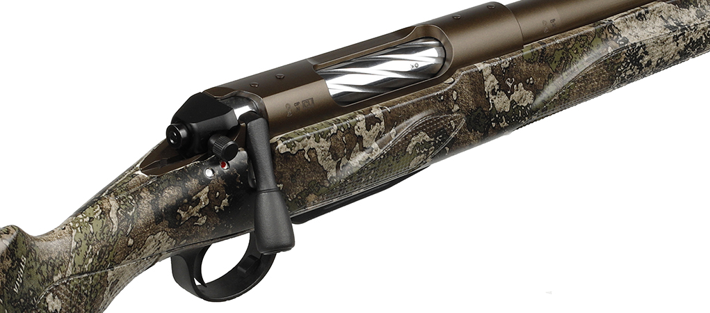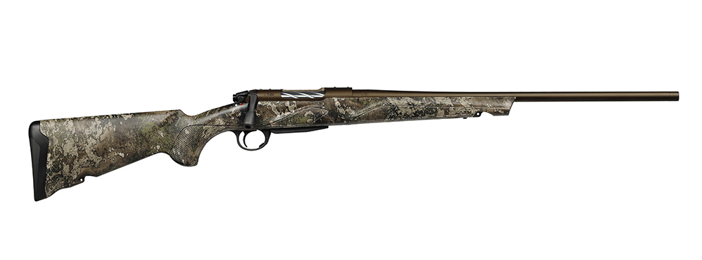Il nuovo allestimento Elite Strata è il primo, della famiglia, ad adottare una finitura camo, la recente Strata di True Timber. Canna e azione sono finite in Cerakote, nella sfumatura Midnight Bronze. Caratteristica della versione è pure l’otturatore fluted, cromato. Viene offerto nei calibri .223 R, .243 W, .270 W, 6,5 CM, .30-06 S, .308 W e .300 WM con caricatore amovibile da 3 colpi (4 nel .223 W). La canna misura 560 mm (610 mm nel calibro magnum). Lo scatto, regolabile tra 900 e 1.800 grammi, è disponibile anche in versione con stecher. Il peso spazia tra i 2.950 e i 3.200 grammi.
