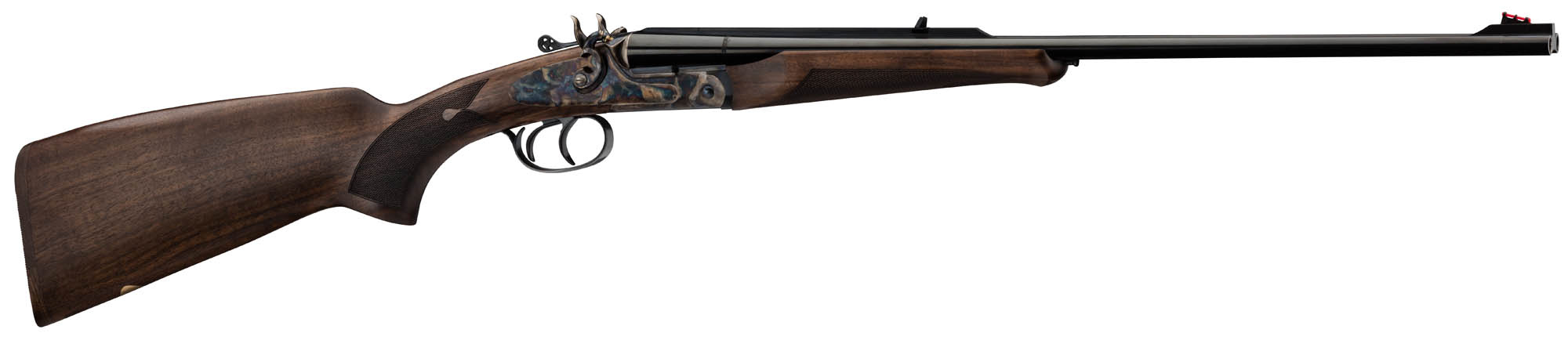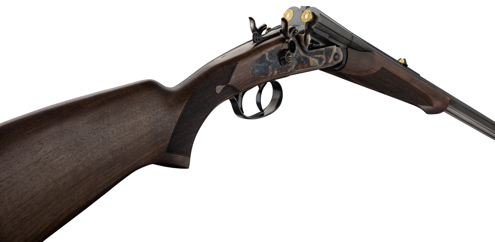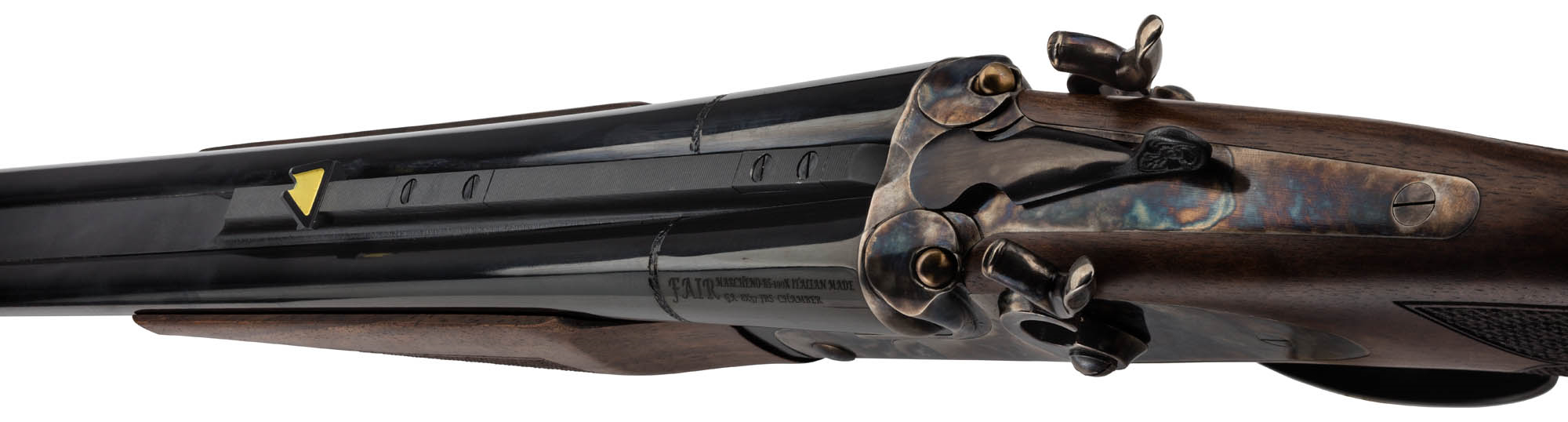 Materiali: canne in acciaio UM/8 – HD40 ad alta resistenza, bascula in acciaio 16 trilegato, calcio e asta in noce europeo