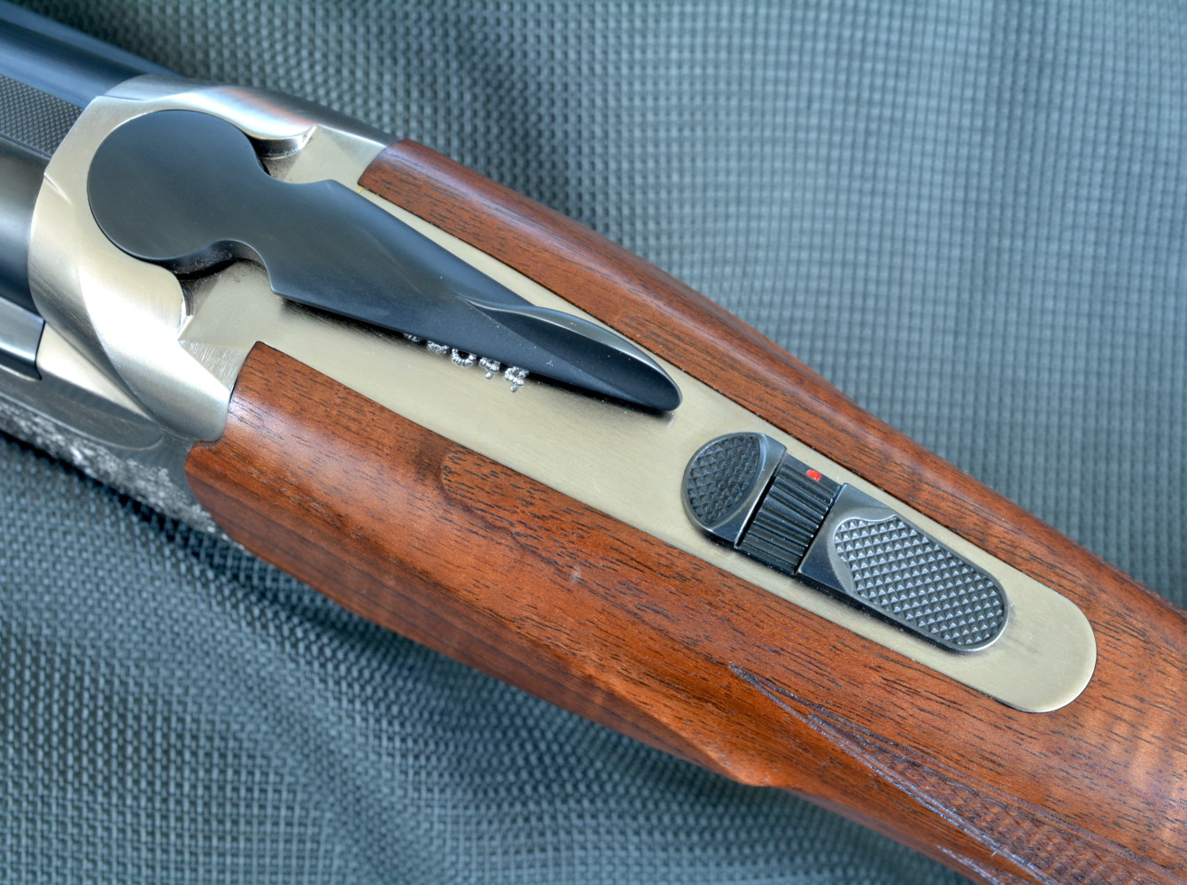 La facilità con cui si aziona il comando è esemplare, dal momento che incorpora anche il selettore di canna. Quest’ultimo, dotato di una godronatura trasversale che ne rende agevole l’azionamento, lascia intravedere anche i punti rossi, a seconda della canna prescelta che spara per prima. Il numero di serie dell’arma è visibile quando si aziona la chiave di apertura.