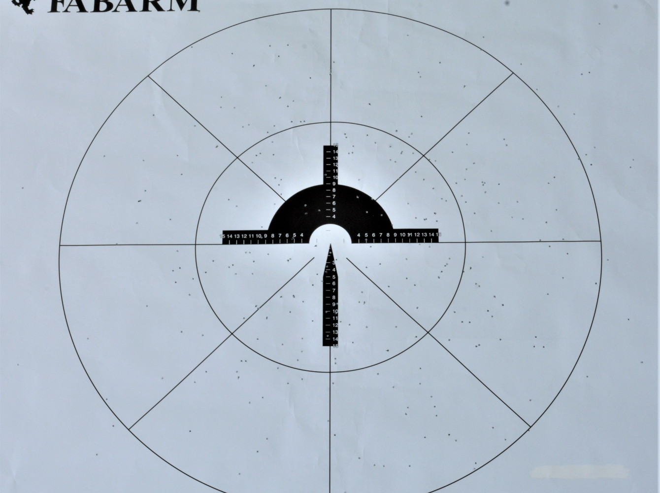 Ho impiegato una cartuccia Baschieri & Pellagri Steel Shot da 35 grammi di acciaio nella numerazione 4 e ho utilizzato lo strozzatore Xtreme Extended, per simulare una situazione oggettivamente complicata. Orbene, la rosata ottenuta è molto bella sia per la distribuzione nel classico cerchio di riferimento dal diametro di 75 centimetri sia per la guarnitura. Non contento, ho utilizzato una cartuccia Pegoraro G38 da caccia, caricata con 38 grammi di piombo numero 6, sempre con lo stesso strozzatore: la rosa è molto stretta, indice di un possibile ulteriore allungamento della distanza d’ingaggio.
