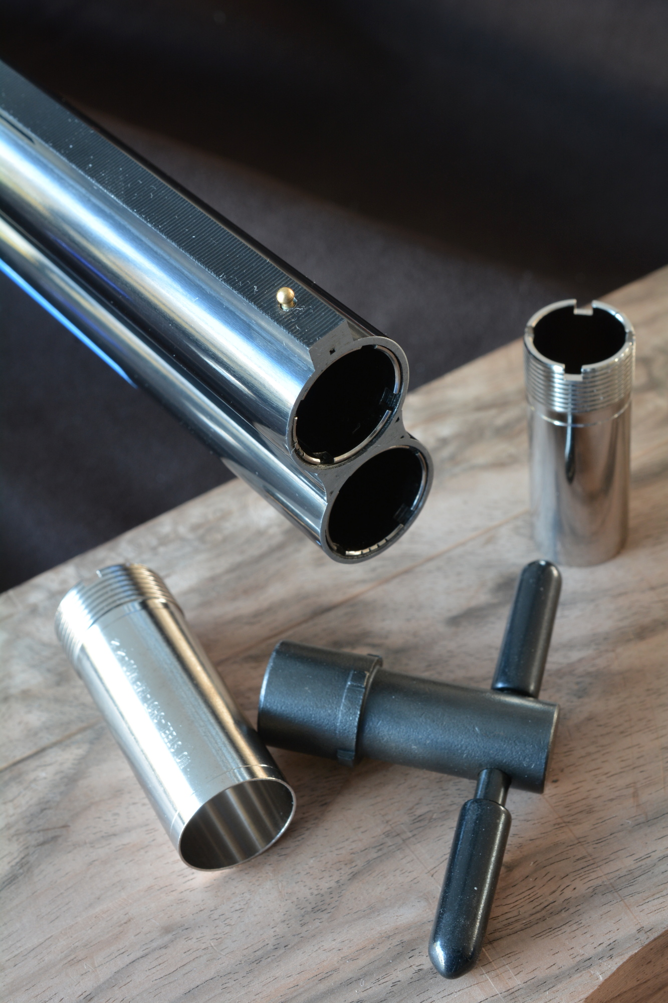 La cameratura delle canne è del tipo magnum, da 76 millimetri di lunghezza. I tubi sono inoltre forati con un procedimento denominato X-Cones, per via del cono di raccordo piuttosto lungo che determina una riduzione del rinculo. Gli strozzatori Tecnichokes Hunting XP50 sono realizzati in acciaio legato allo stato crudo con resistenza R85-100 e sottoposti a un trattamento (interno ed esterno) di nichelatura superficiale, per un’elevata resistenza in nebbia salina. Eccellente la chiave in metallo in dotazione all’arma, robusta e pratica nell’utilizzo. Il peso delle canne, comprensivo degli strozzatori montati, fa registrare 1,3 kg circa.