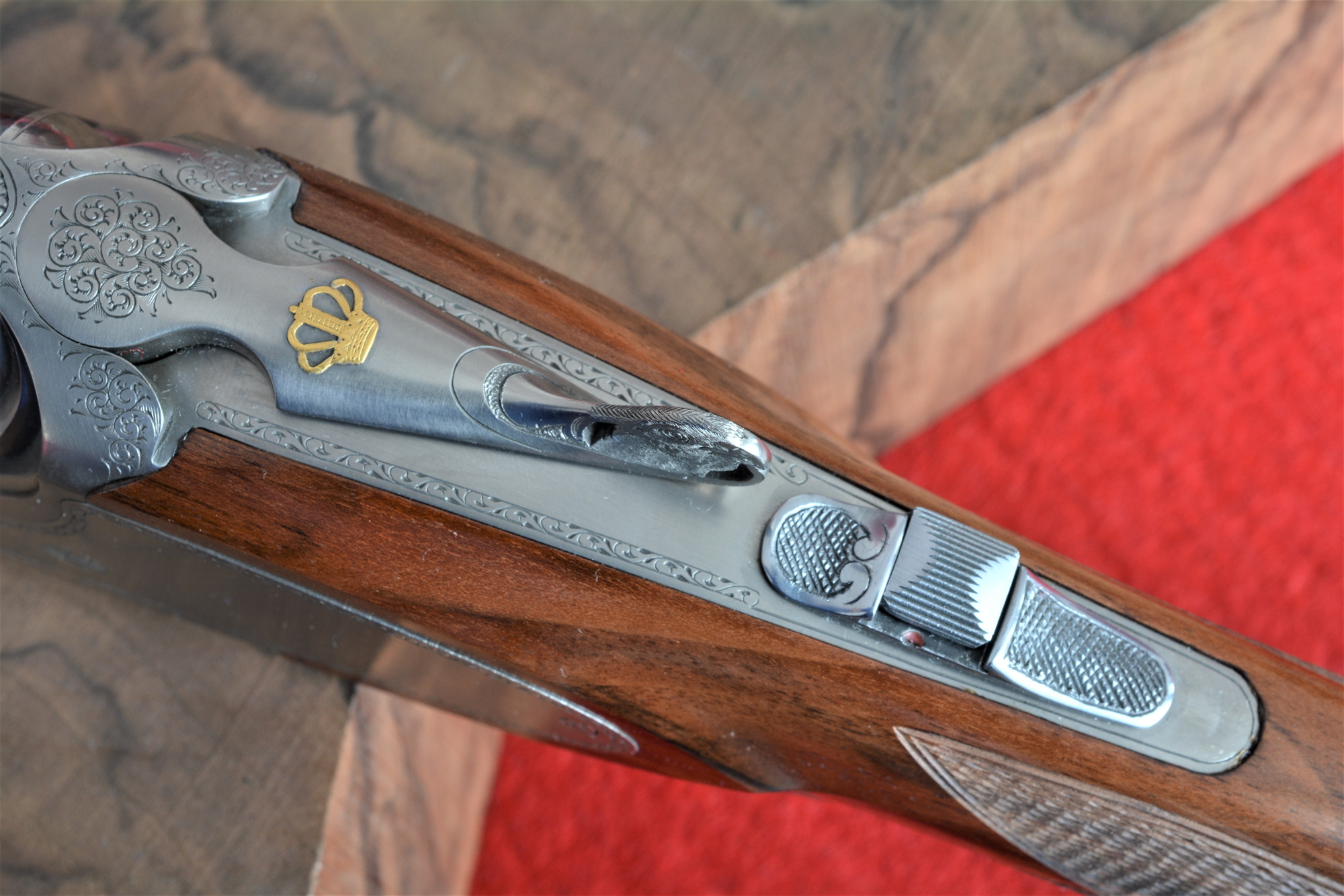 Tutta la minuteria è finita argento vecchio, in accordo cromatico con la bascula. Si riscontra un ampio ponticello, con la faccia ventrale incisa; lo spazio all’interno non è esiguo, sì da consentire un ingresso agevole al dito deputato allo sparo anche nei momenti frenetici della caccia. La pala del monogrilletto selettivo è ben conformata e con una curvatura corretta. Il selettore di canna è, come d’abitudine, situato sulla codetta di bascula, unitamente al comando della sicura.
