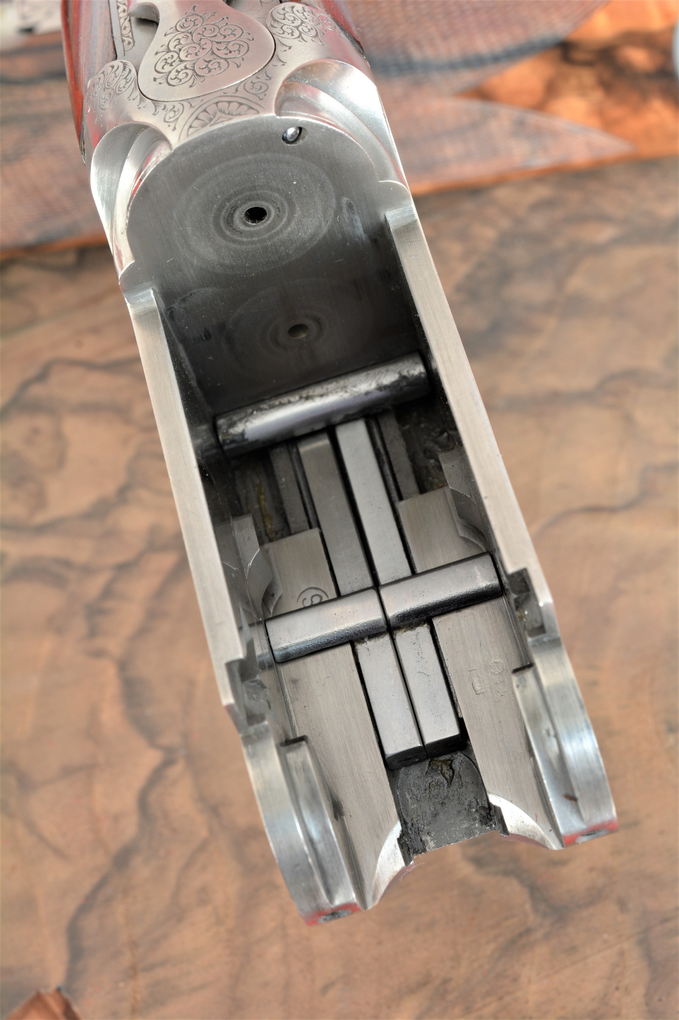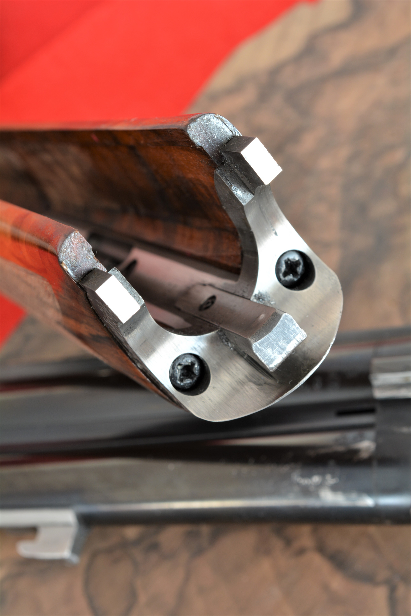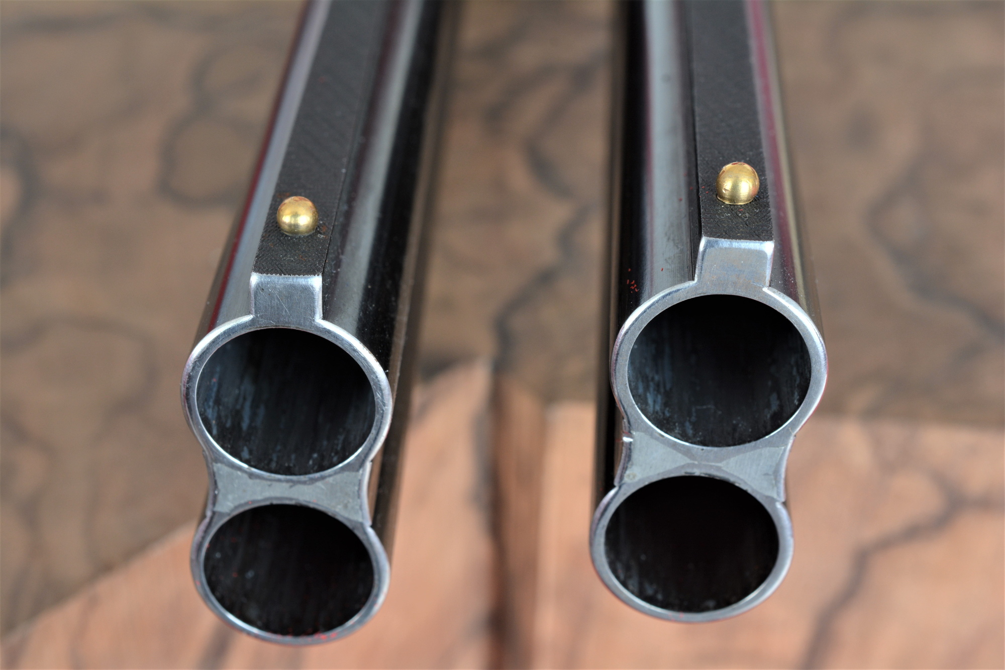 La foratura delle canne è di 16,0 millimetri in anima per entrambi i tubi, che sono accoppiati al monobloc finito a bastoncino. È inoltre visibile il leggero cordoncino in corrispondenza del punto di saldatura). L’adozione di un paio di canne integrali migliorerebbe ulteriormente l’estetica di questi già splendidi fucili.