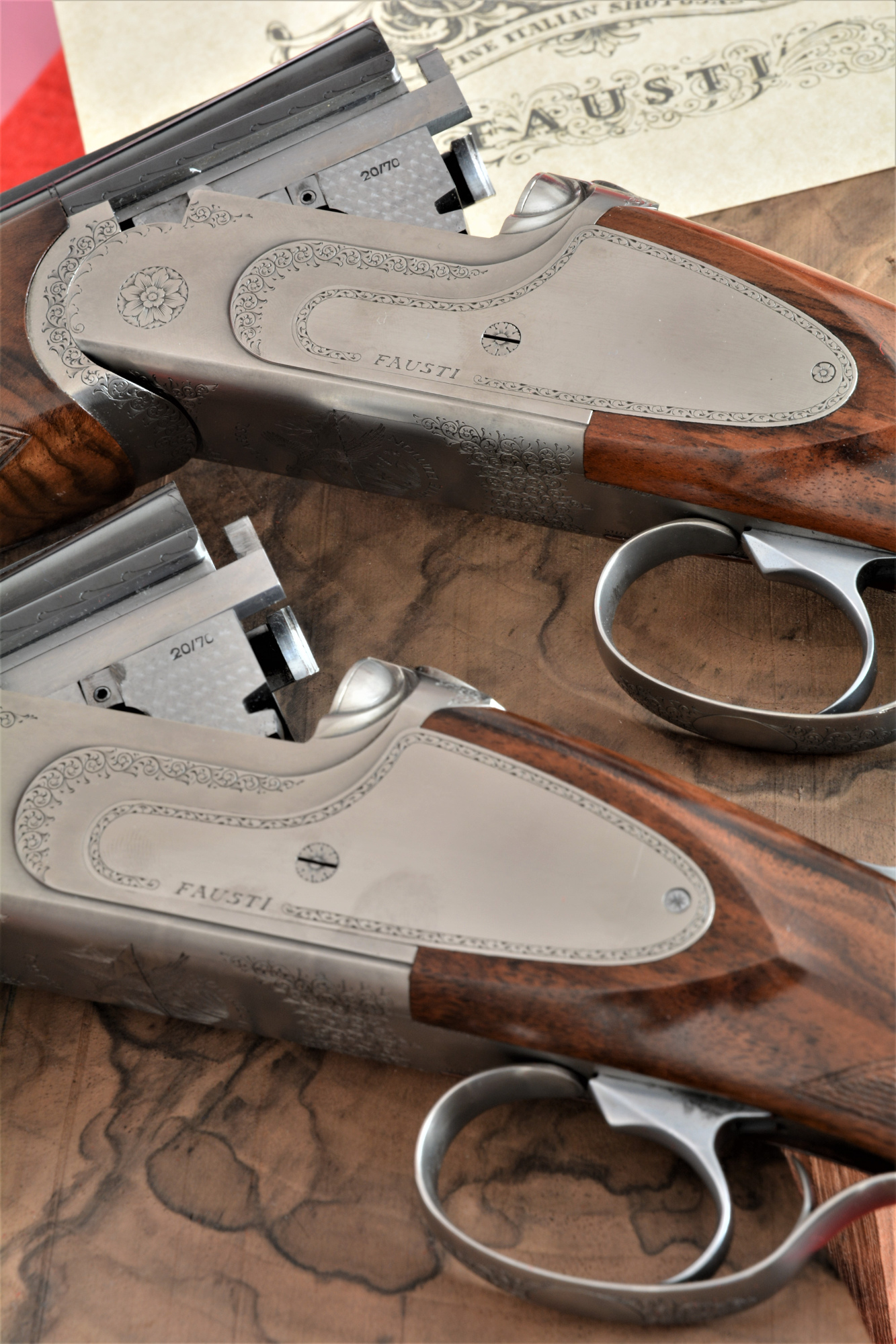 Una particolarità la si nota sull’ordine di scatto; come per tutti i fucili da drive che si rispettino, la prima canna che spara è la seconda, quella con strozzatura maggiore. Non deve sembrare un errore o un gioco di parole, è un accorgimento tecnico intenzionale. I selvatici sono infatti in avvicinamento e il primo colpo viene sparato a distanza maggiore del secondo, di solito più ravvicinato. La canna che spara per prima è comunque indicata da uno o due punti rossi, sì da risaltare a colpo d’occhio per chi guarda. Comunque, la coppia di fucili Fausti può essere personalizzata a dovere con un bigrillo, per esempio.