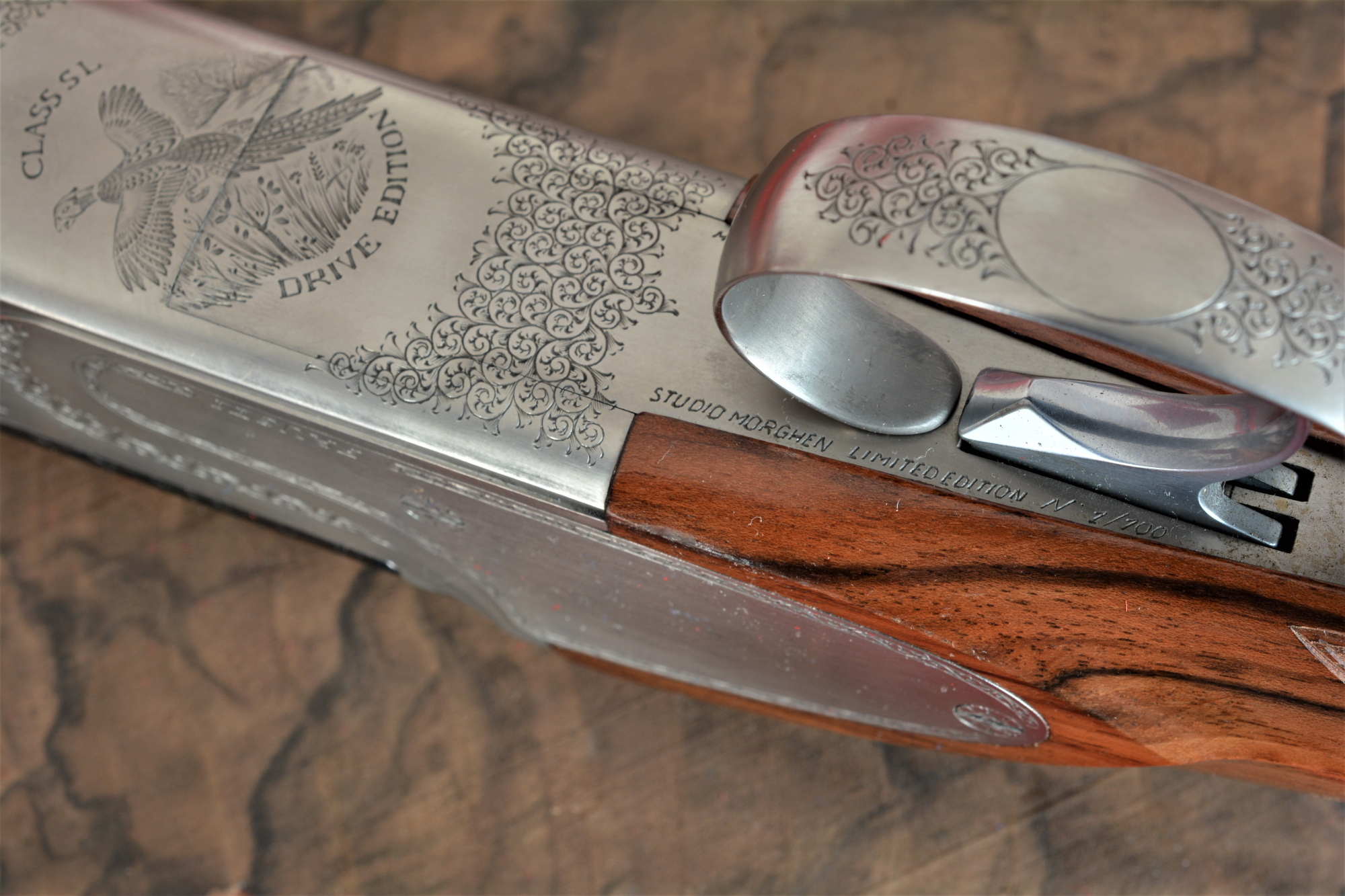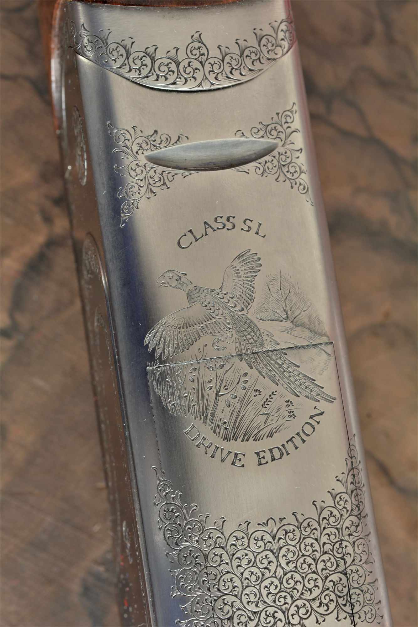 Il tiratore deve poter provare lo stesso tipo di comfort o sensazione allo sparo, per non avere distrazioni di sorta e concentrarsi soltanto sul selvatico. I due sovrapposti Class SL Drive Edition rispondono appieno a questo requisito, offrendo infatti un insieme di ricche venature omogenee sui due calci: ciò necessariamente aumenta il prezzo per la necessità di ricorrere ad abbozzi provenienti dallo stesso taglio di pianta. Stesso dicasi per le astine, all’inglese o a semicastoro, il cui sgancio è affidato a un comando ad auget lungo, con leggera incisione e finitura argento vecchio. Lo spazio per il dito che aziona il comando non è tantissimo, ma più che sufficiente alla bisogna. Ottima l’incassatura.